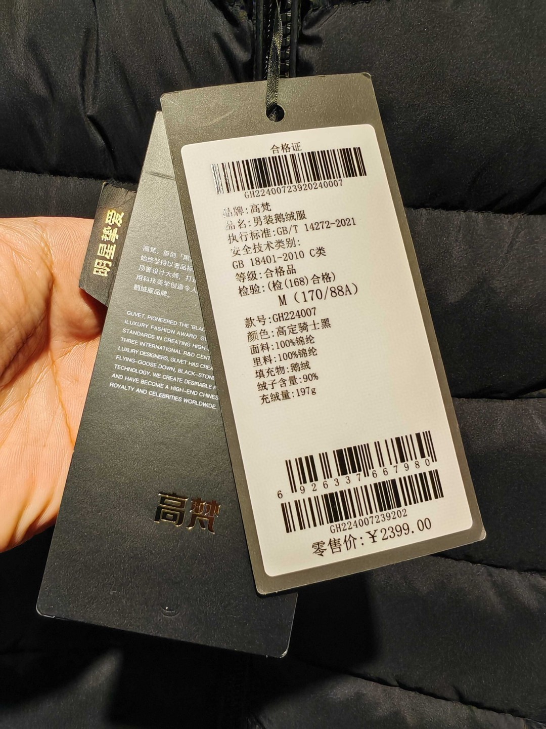 国内羽绒服的天花板..高梵黑金..懂得都懂..线下专柜才有的款式..比网络版品质好..90鹅绒..专柜2399元在售.