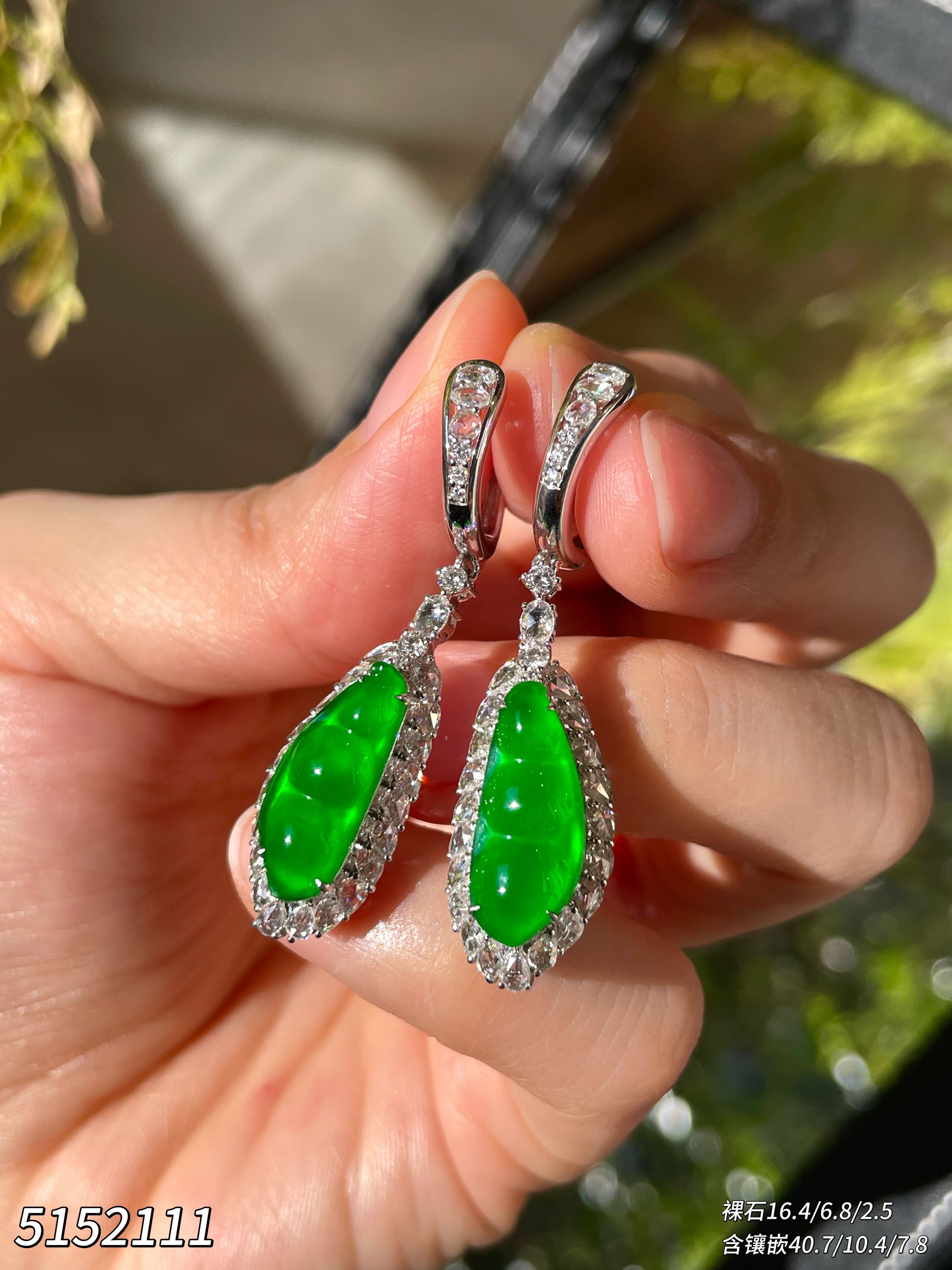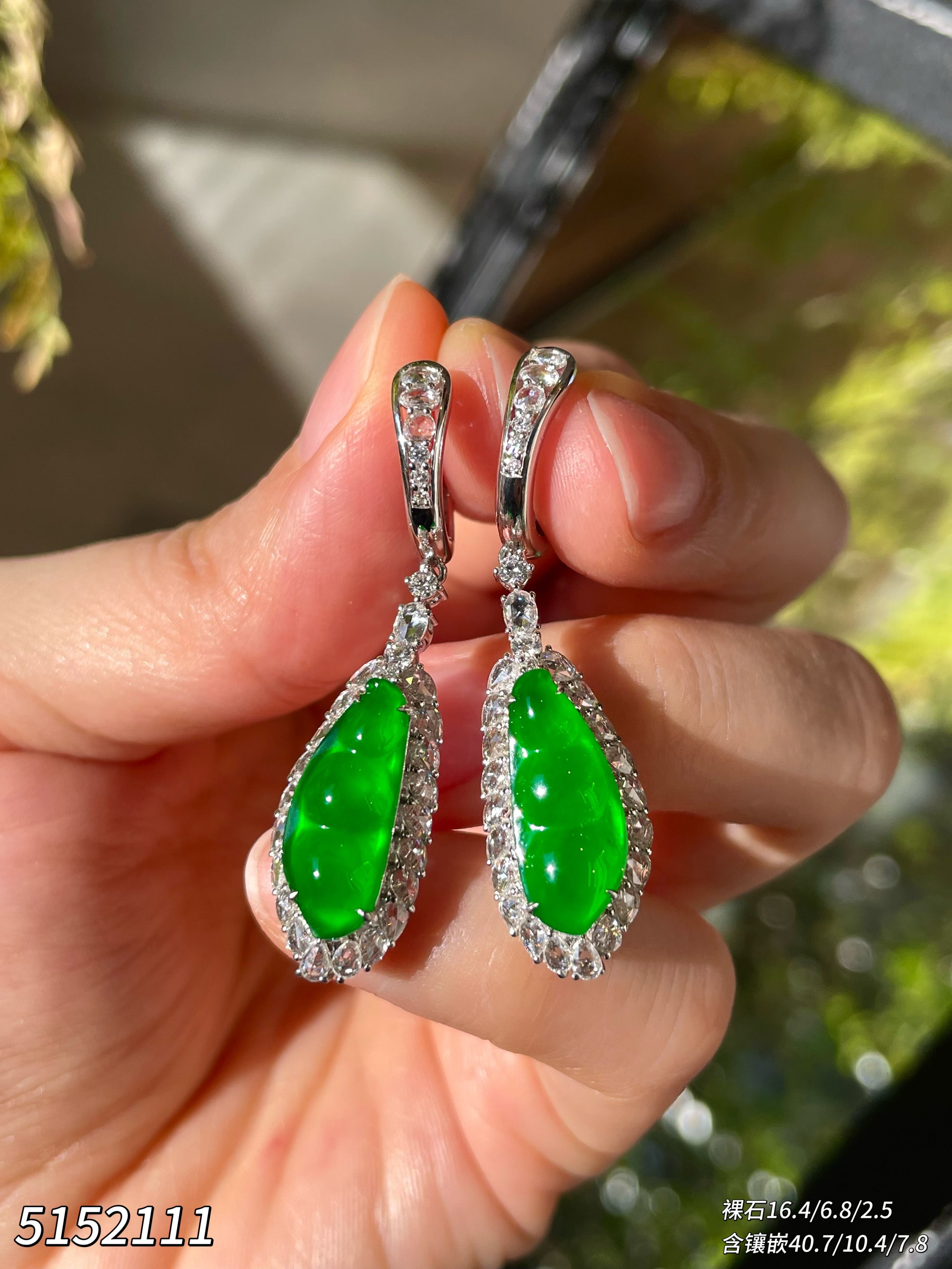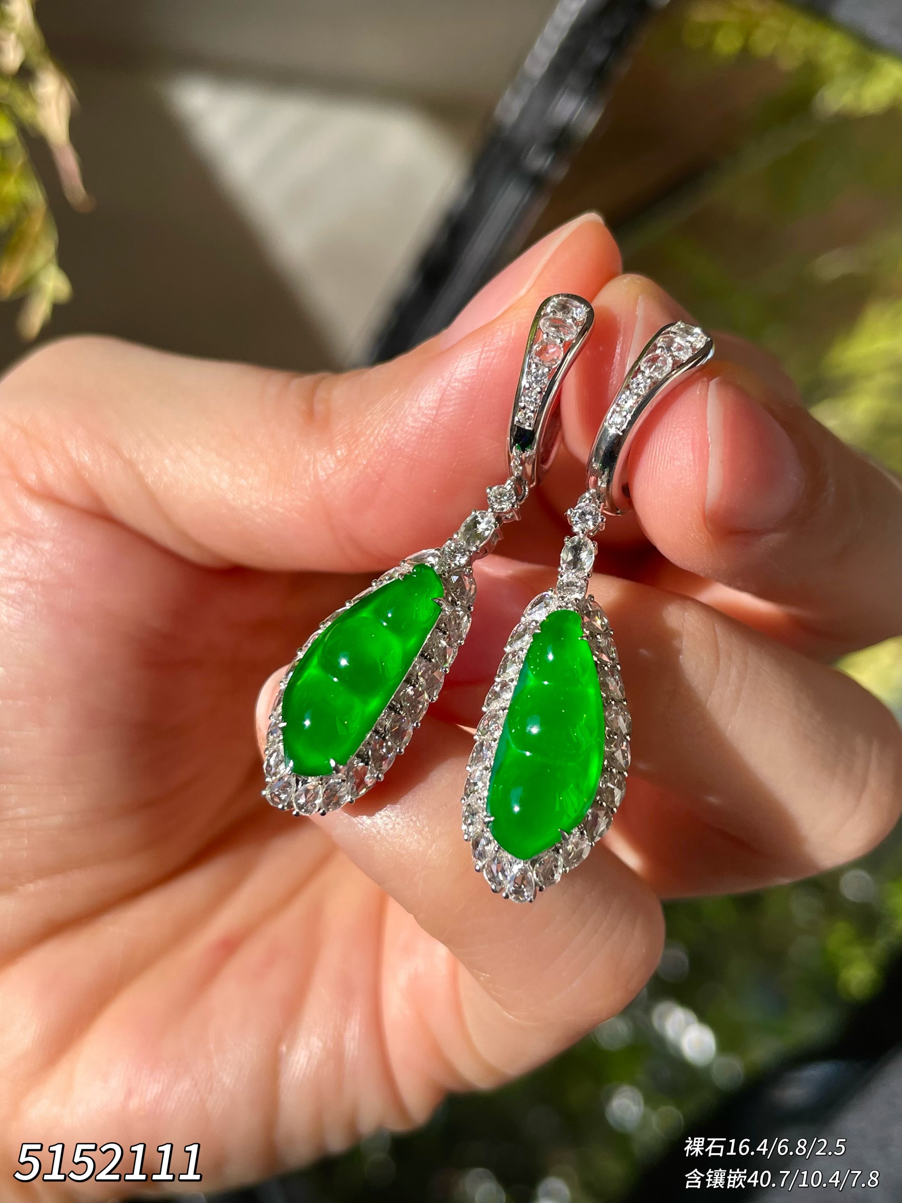玻璃种帝王绿蛋面耳坠【6023104】具体价格微信咨询