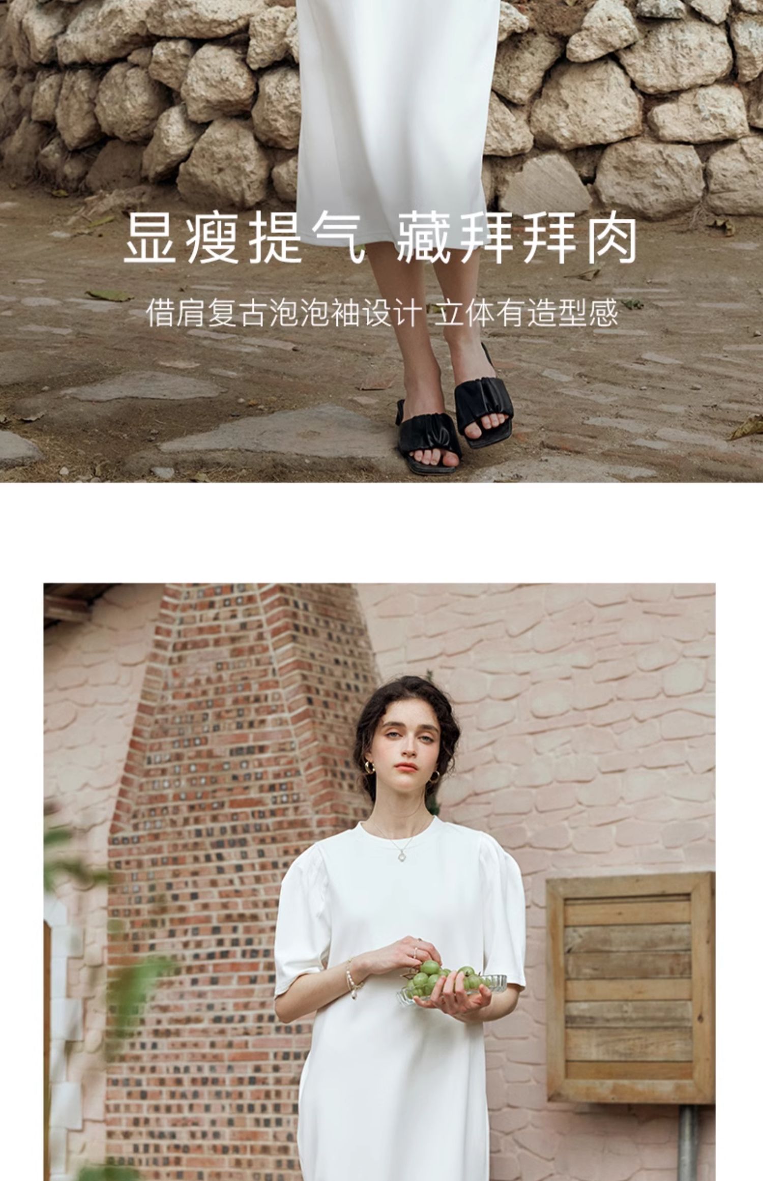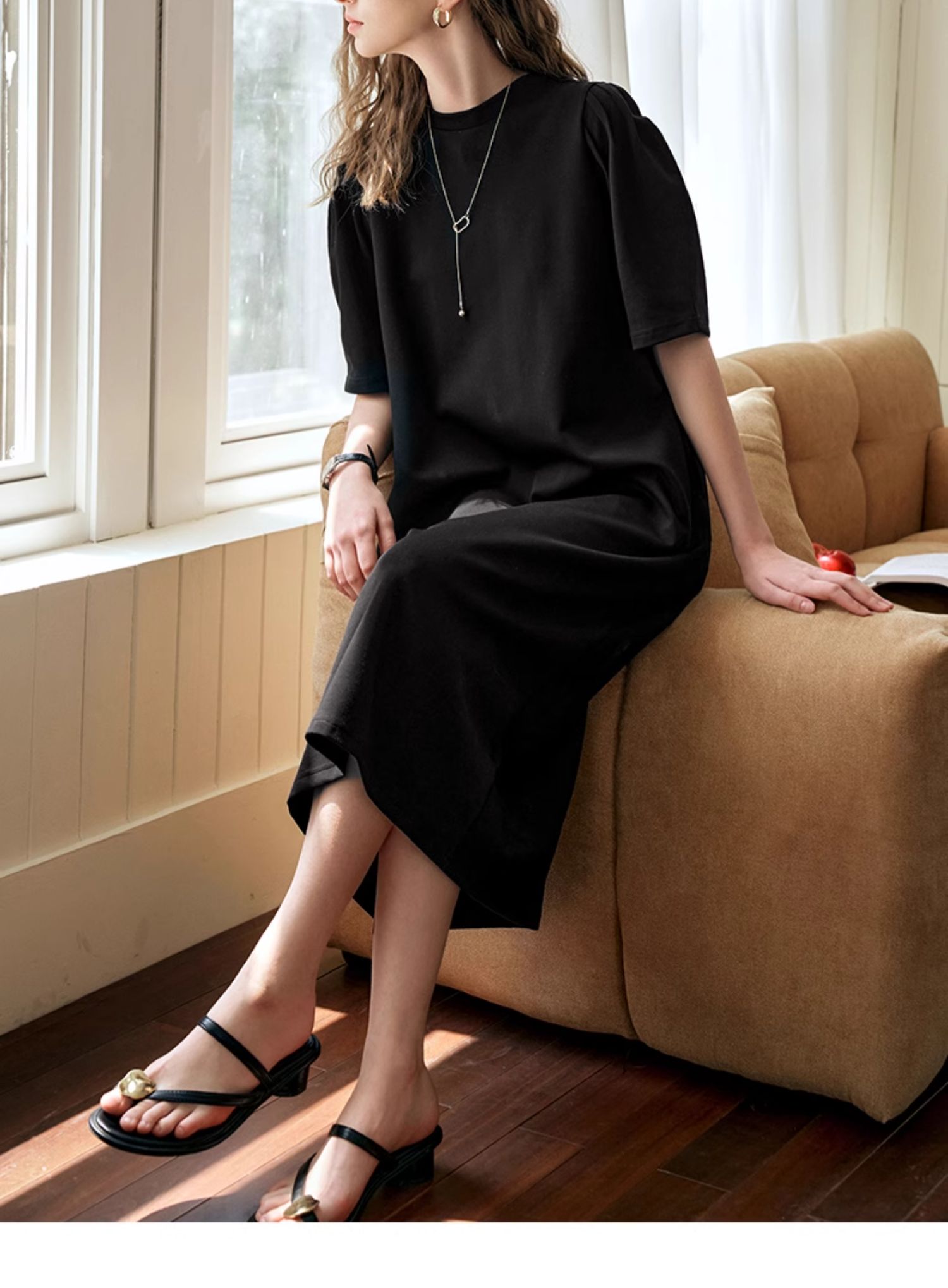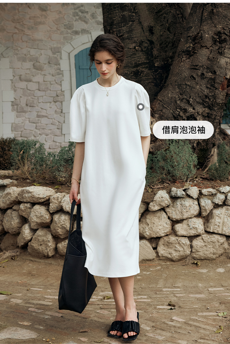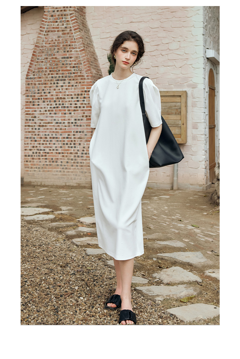 OLrain欧芮儿休闲连衣裙女夏季2024年新款时尚宽松泡泡袖针织长裙