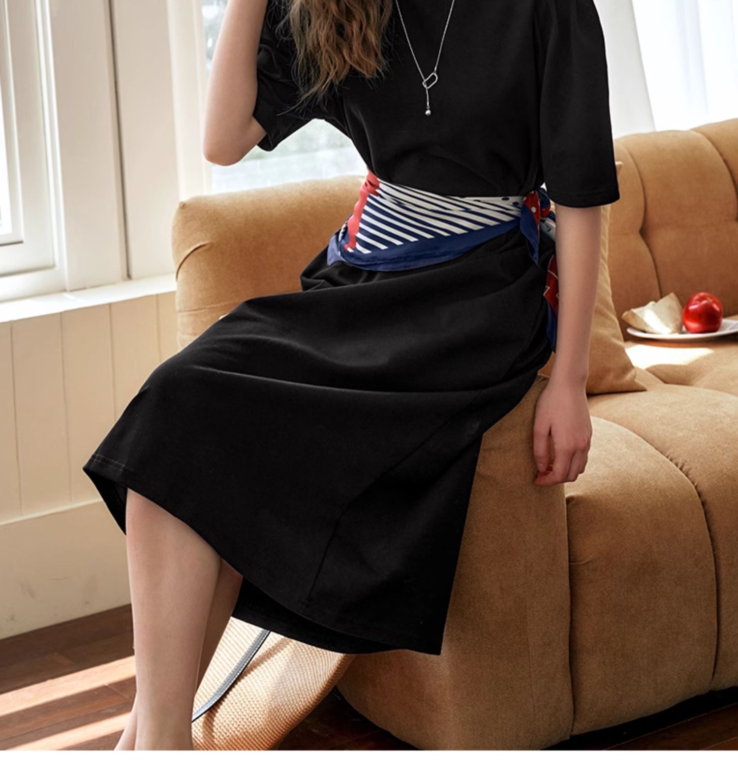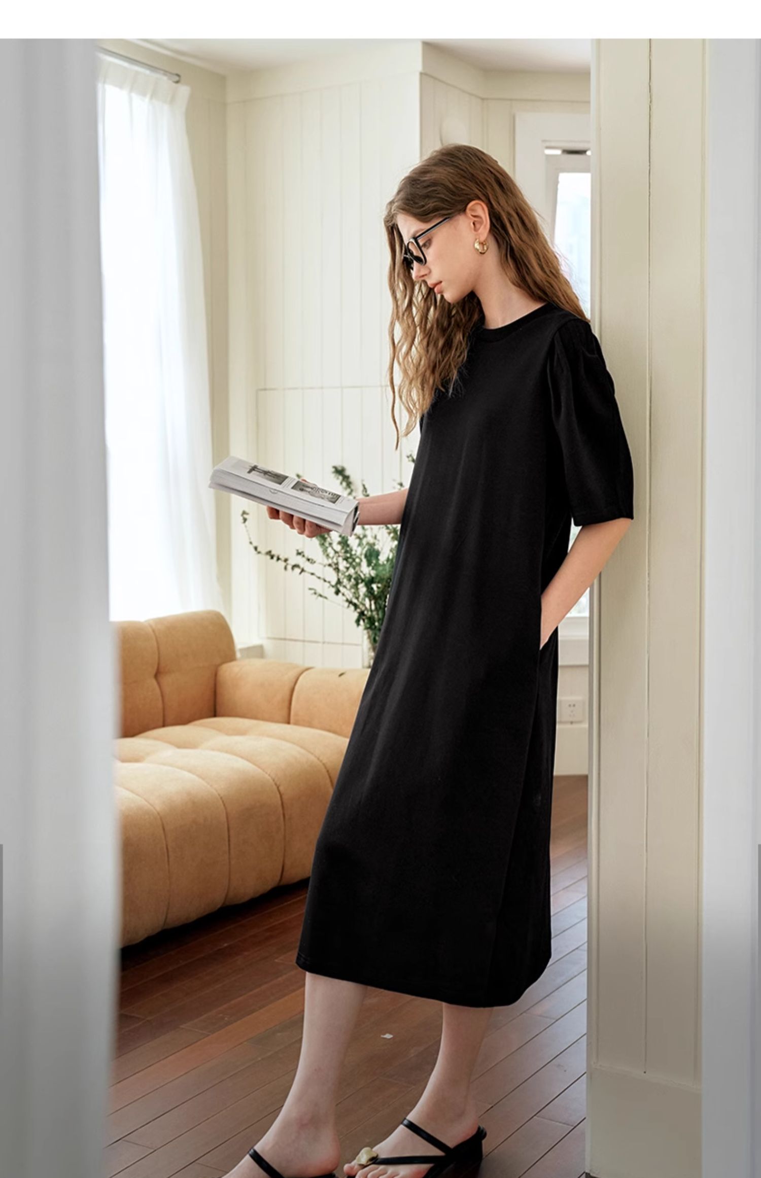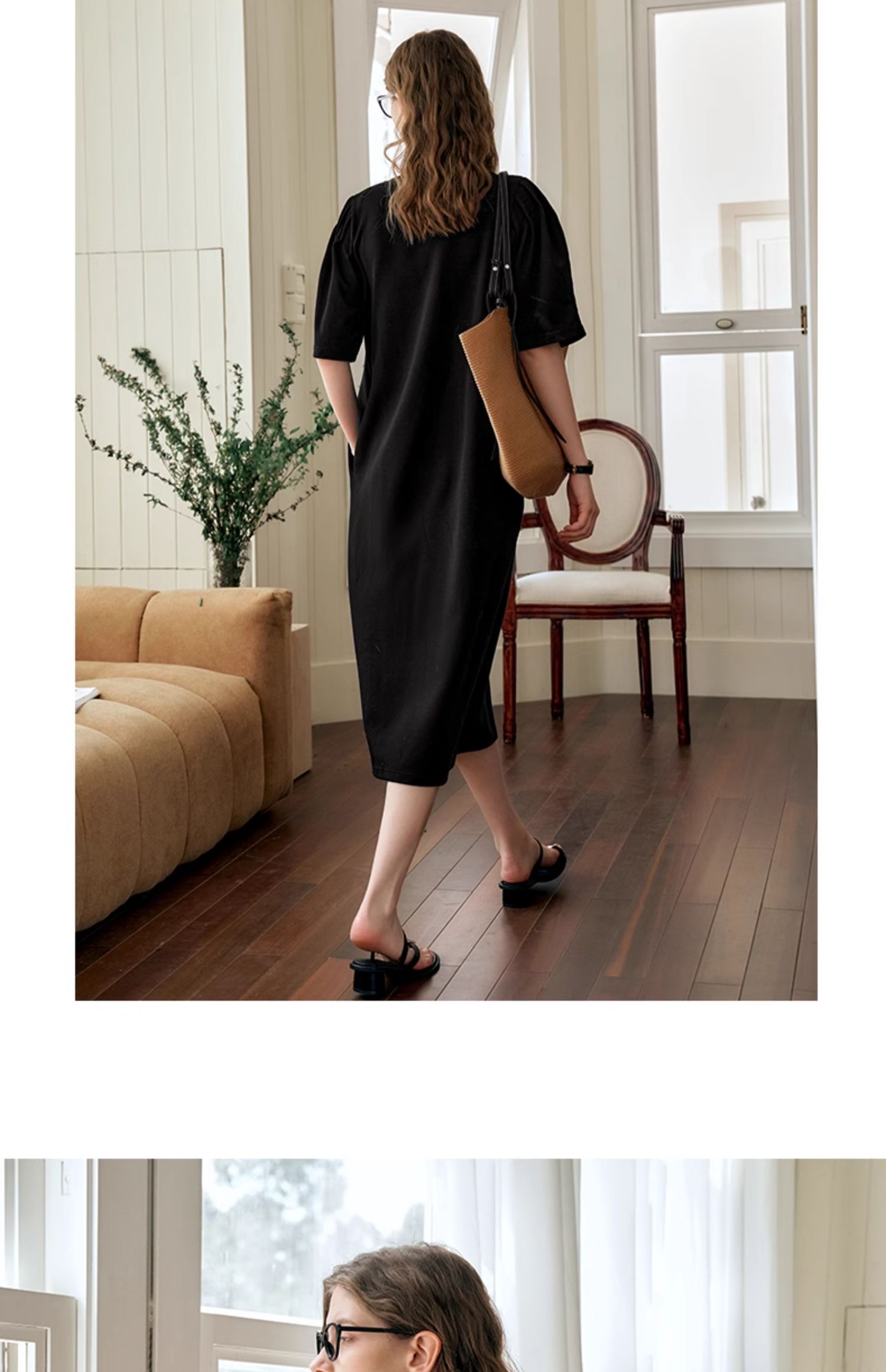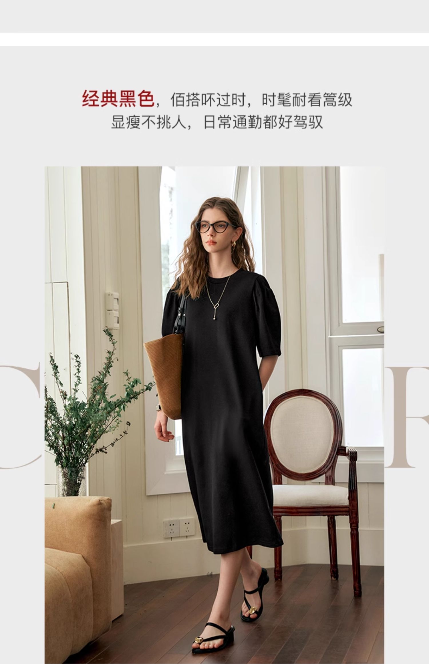 OLrain欧芮儿休闲连衣裙女夏季2024年新款时尚宽松泡泡袖针织长裙