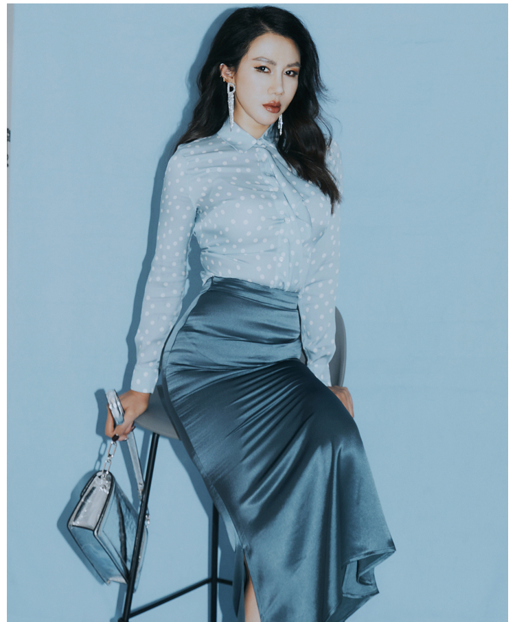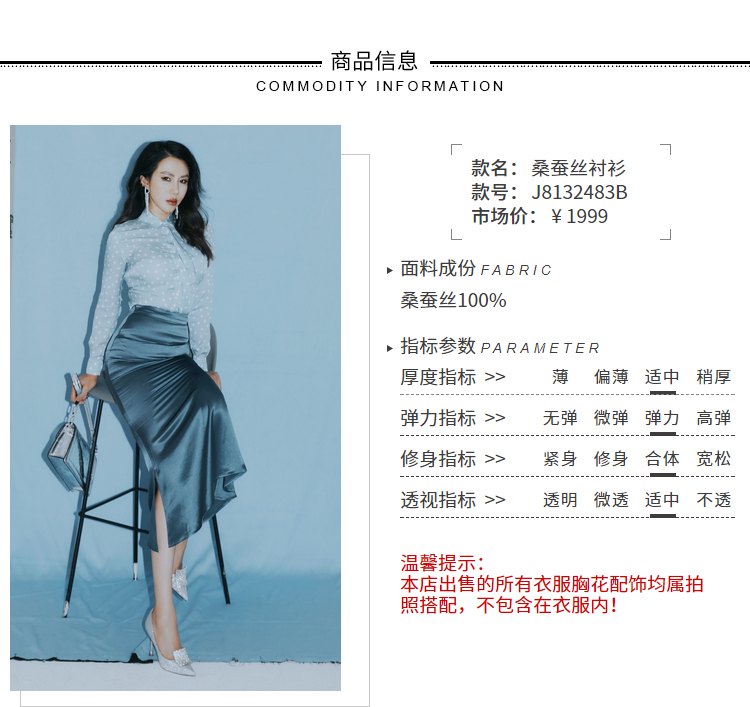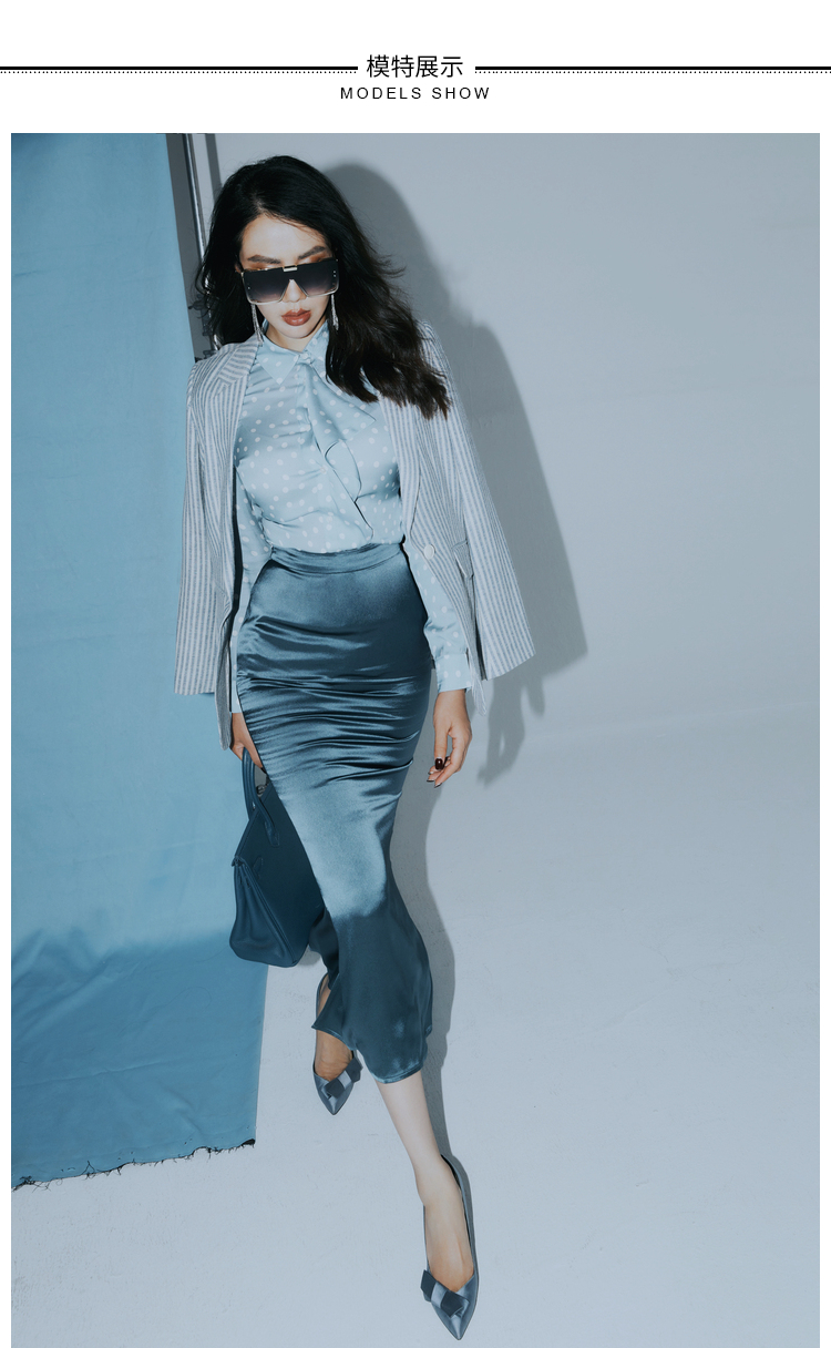 “冰滴海洋”100%桑蚕丝衬衫清新活力灵动四季可穿J8132483A 颈袖添香