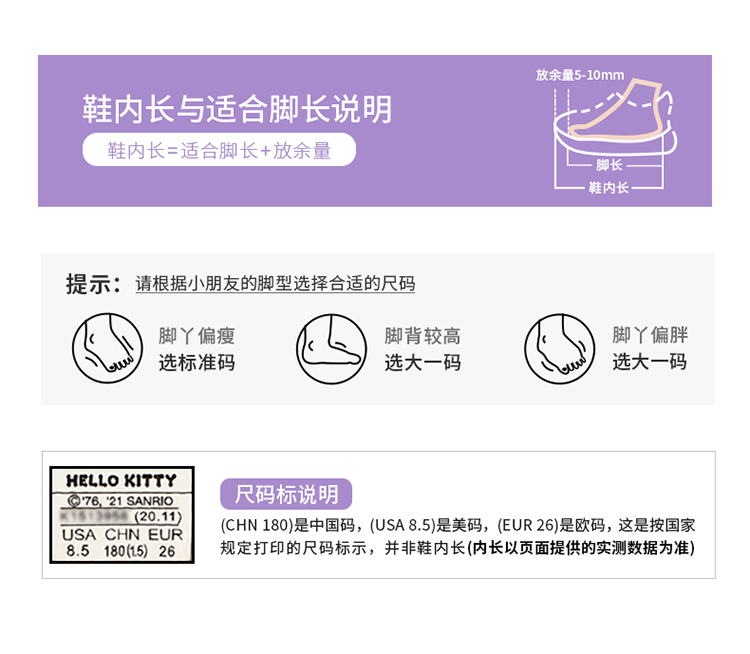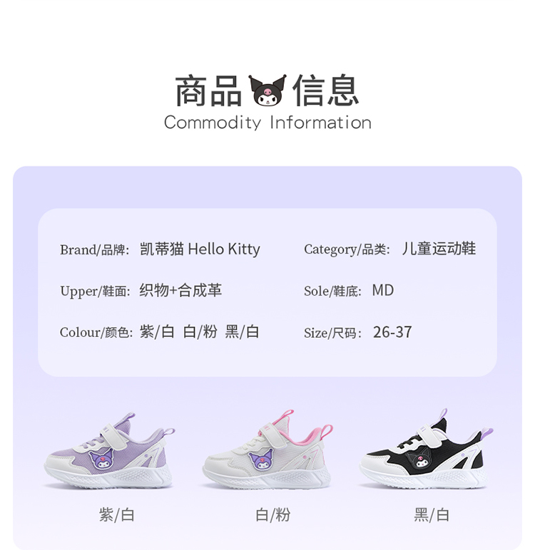 hellokitty库洛米童鞋女童运动鞋春季儿童透气跑鞋小白鞋26-37 KU5516819