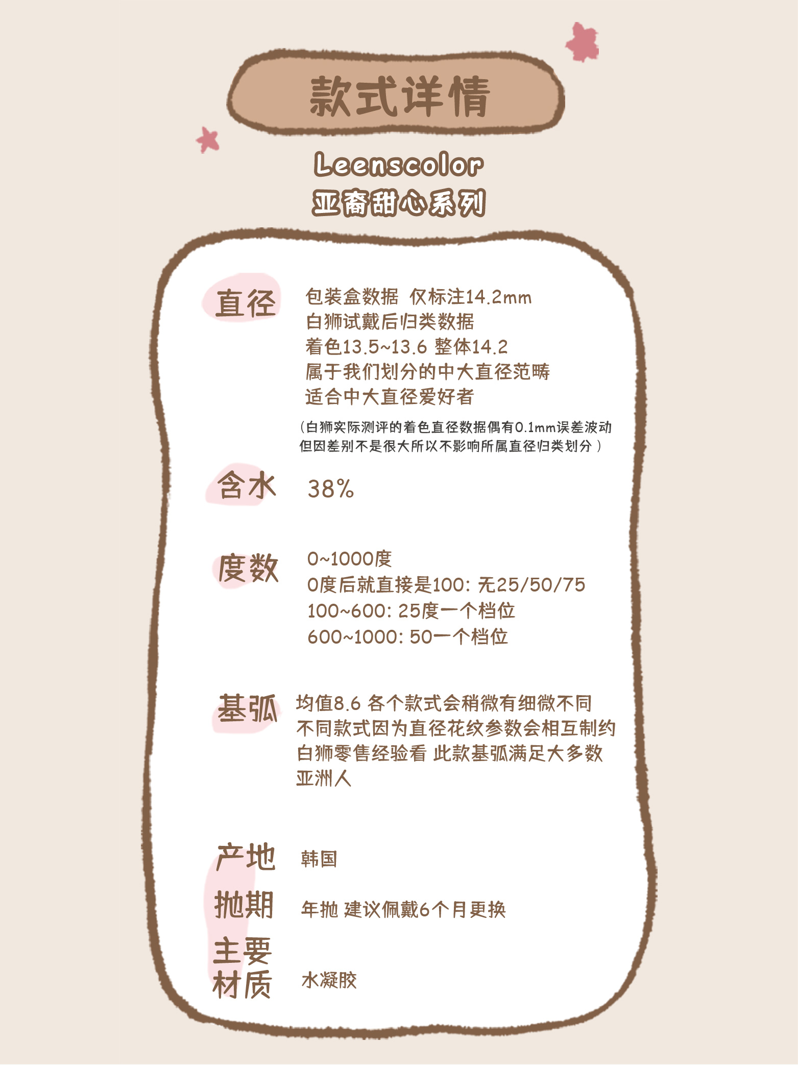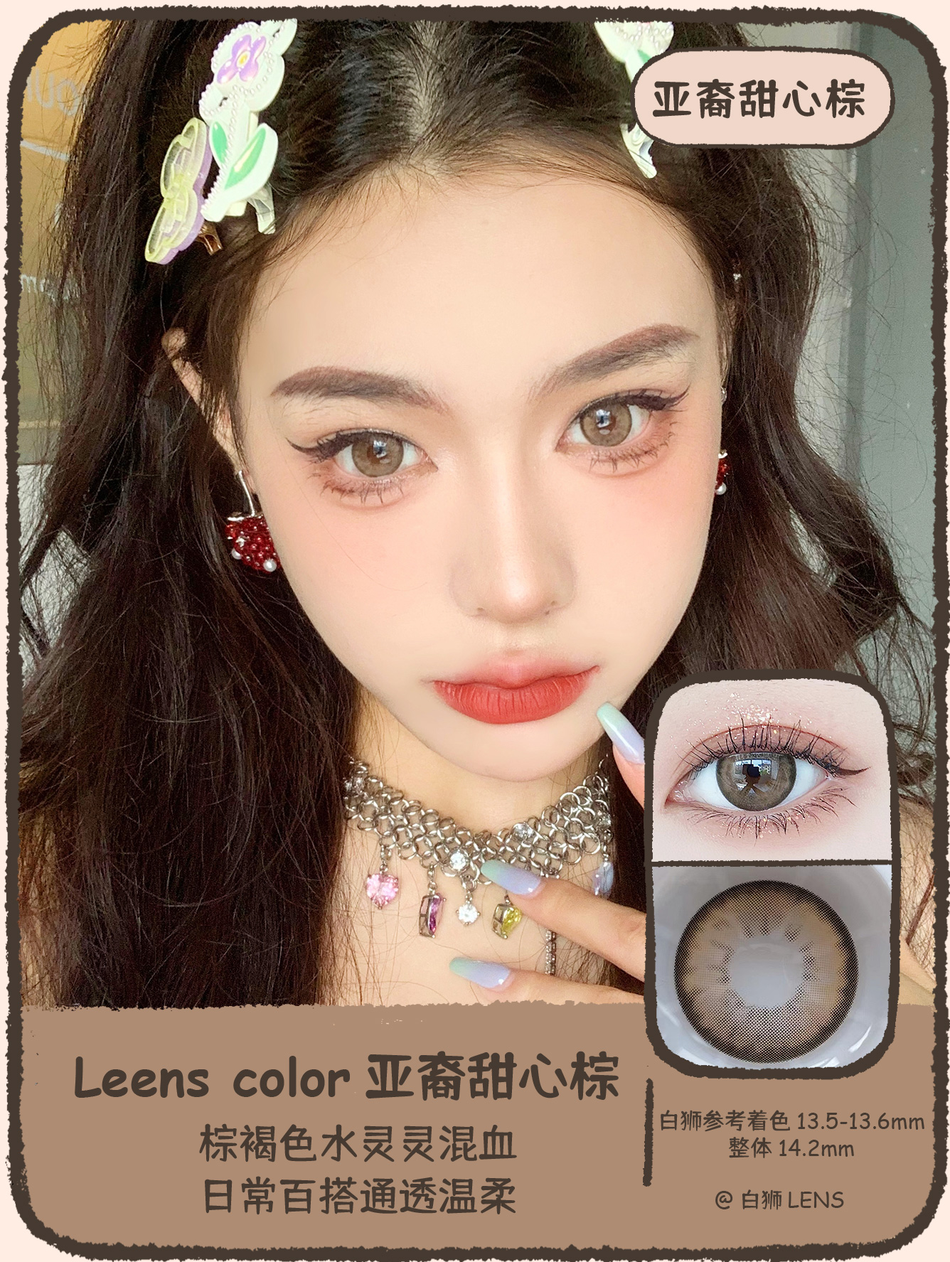 Leenscolor旗下 ·小棕绿&杨梅冰& 亚裔甜心棕&亚裔甜心灰&亚裔甜心蓝 · 14.2mm中大直径 年抛美瞳 2片