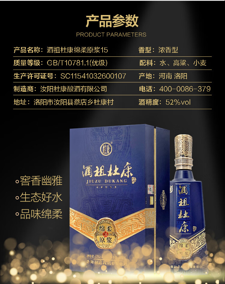 【京东直发】酒祖杜康绵柔15 500ml/瓶