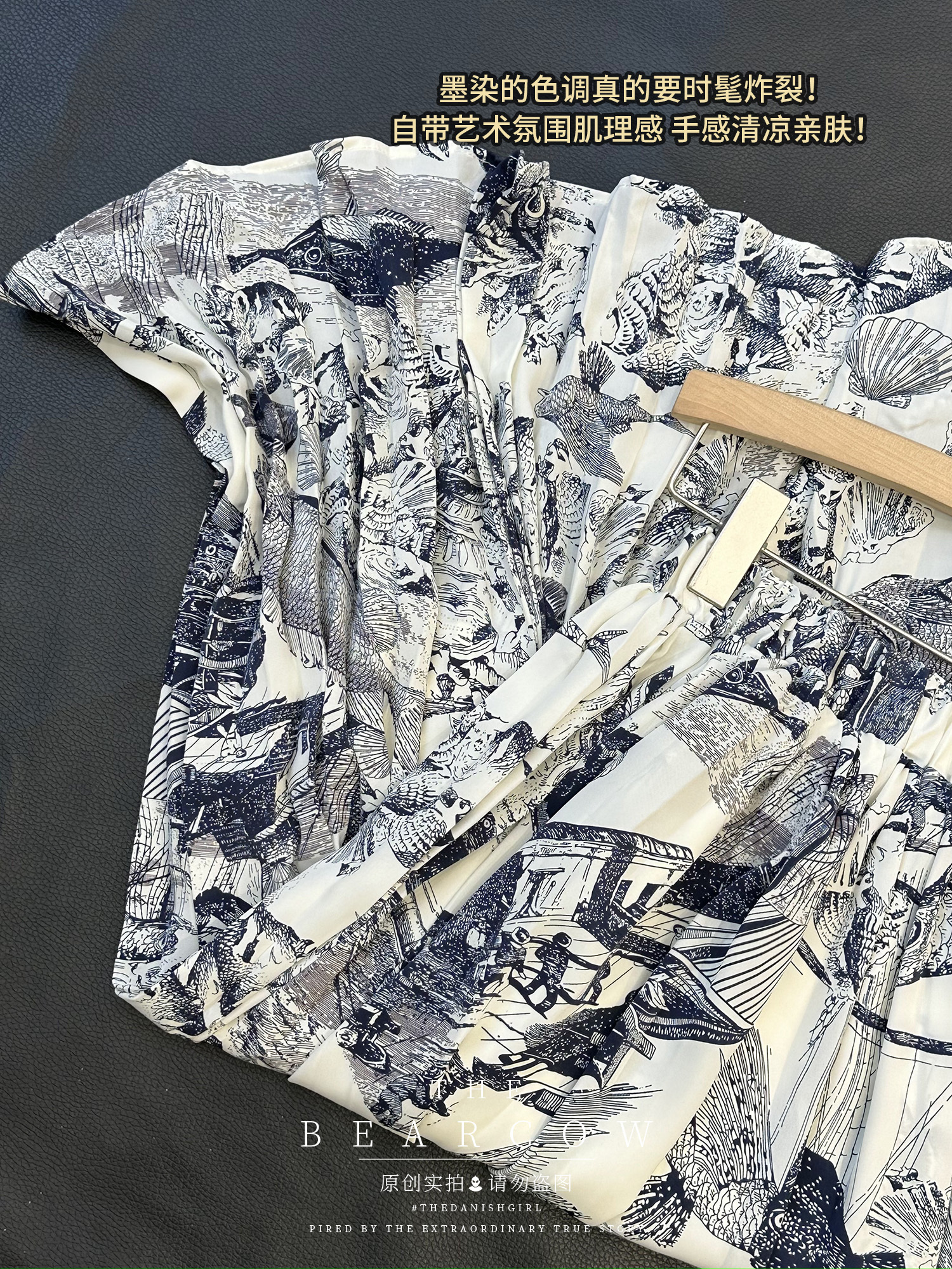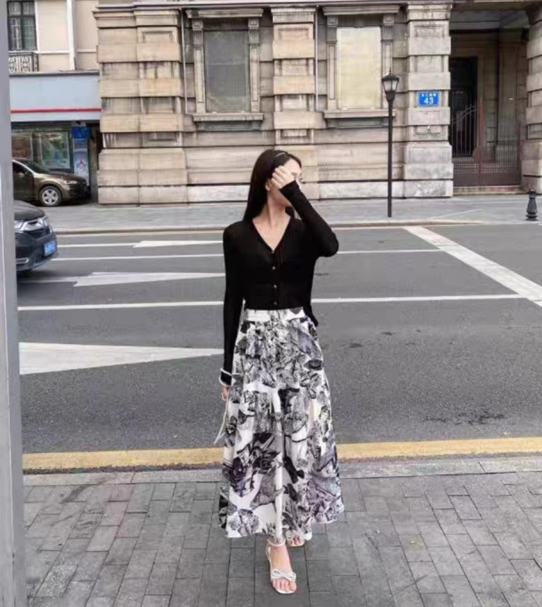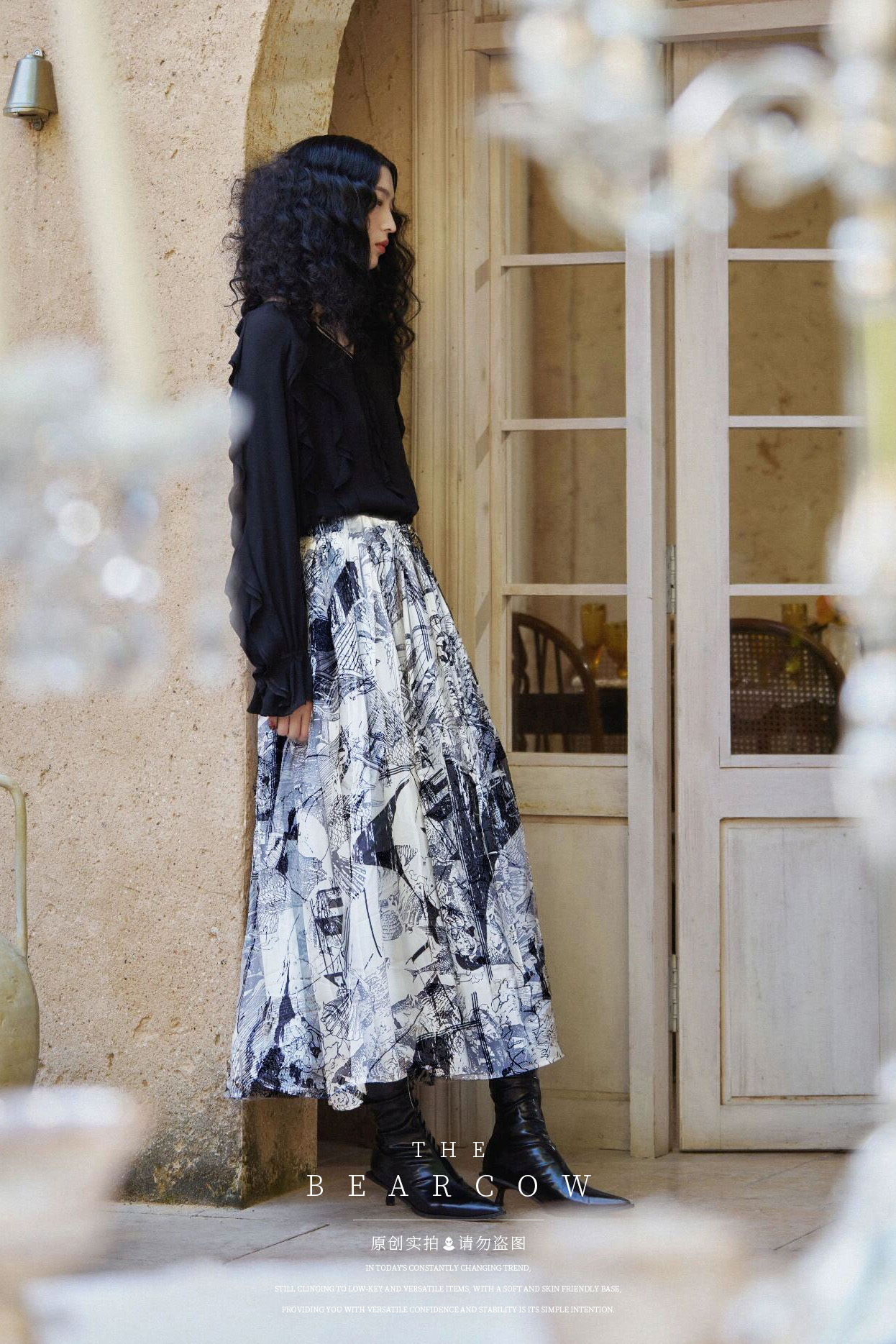 独家贵妇团D同款面料【千吉娜.水墨工艺半生裙】高级宝藏印花 都市小姐姐标配