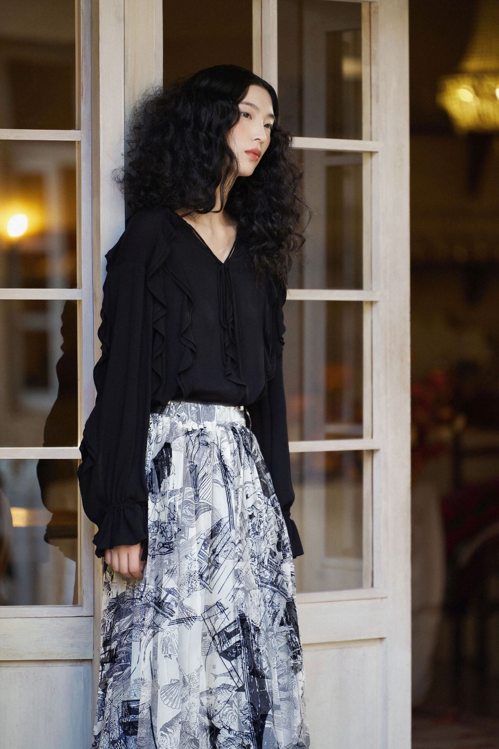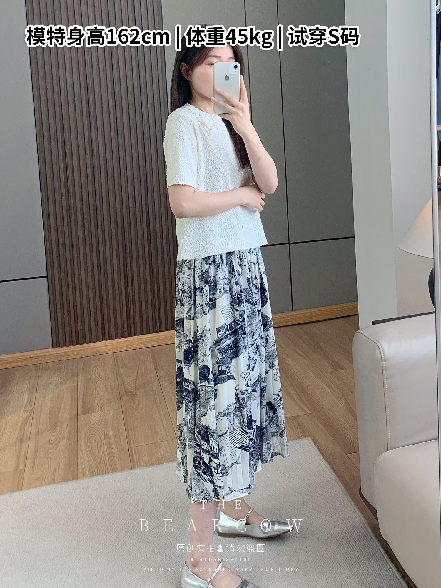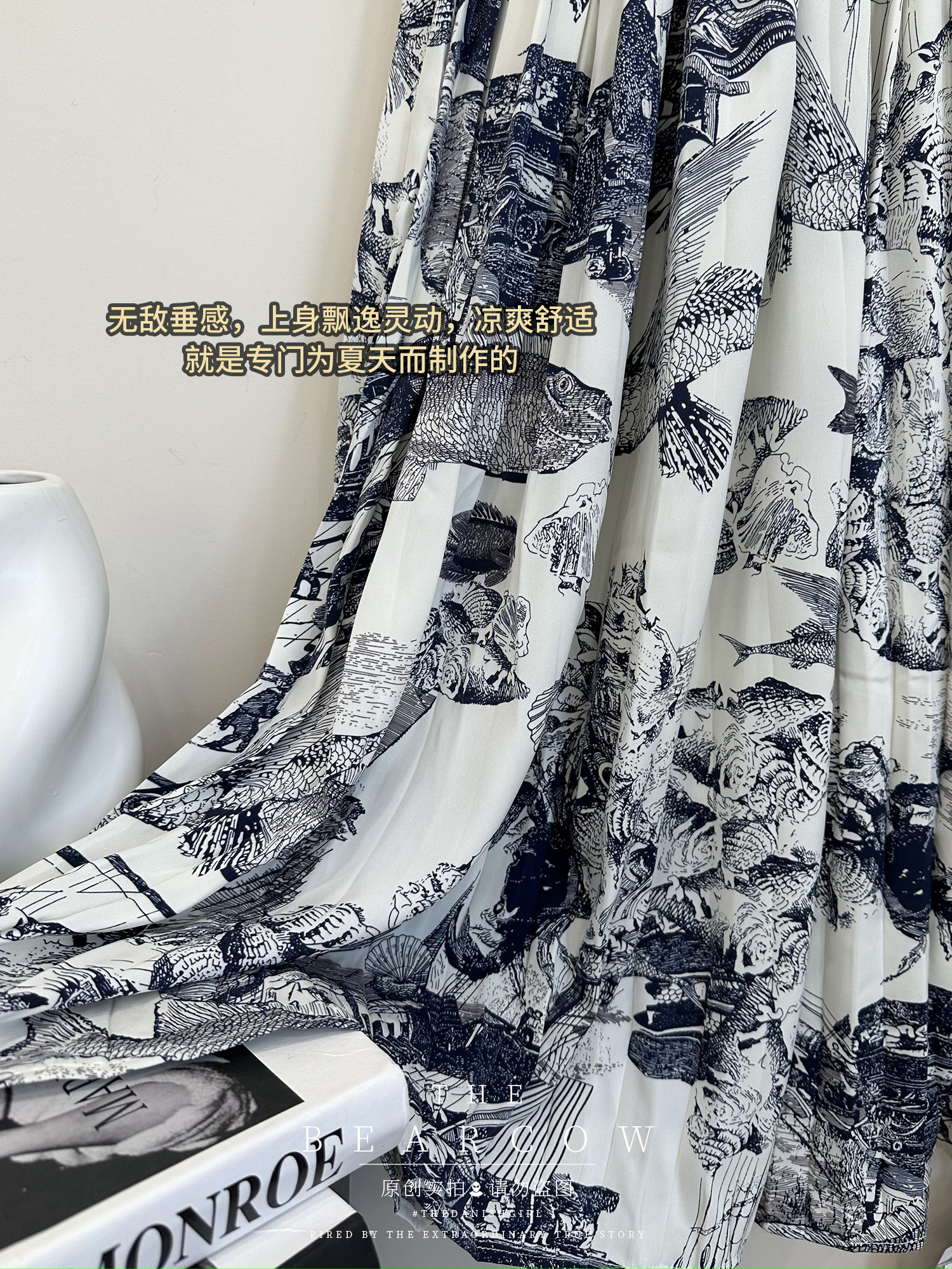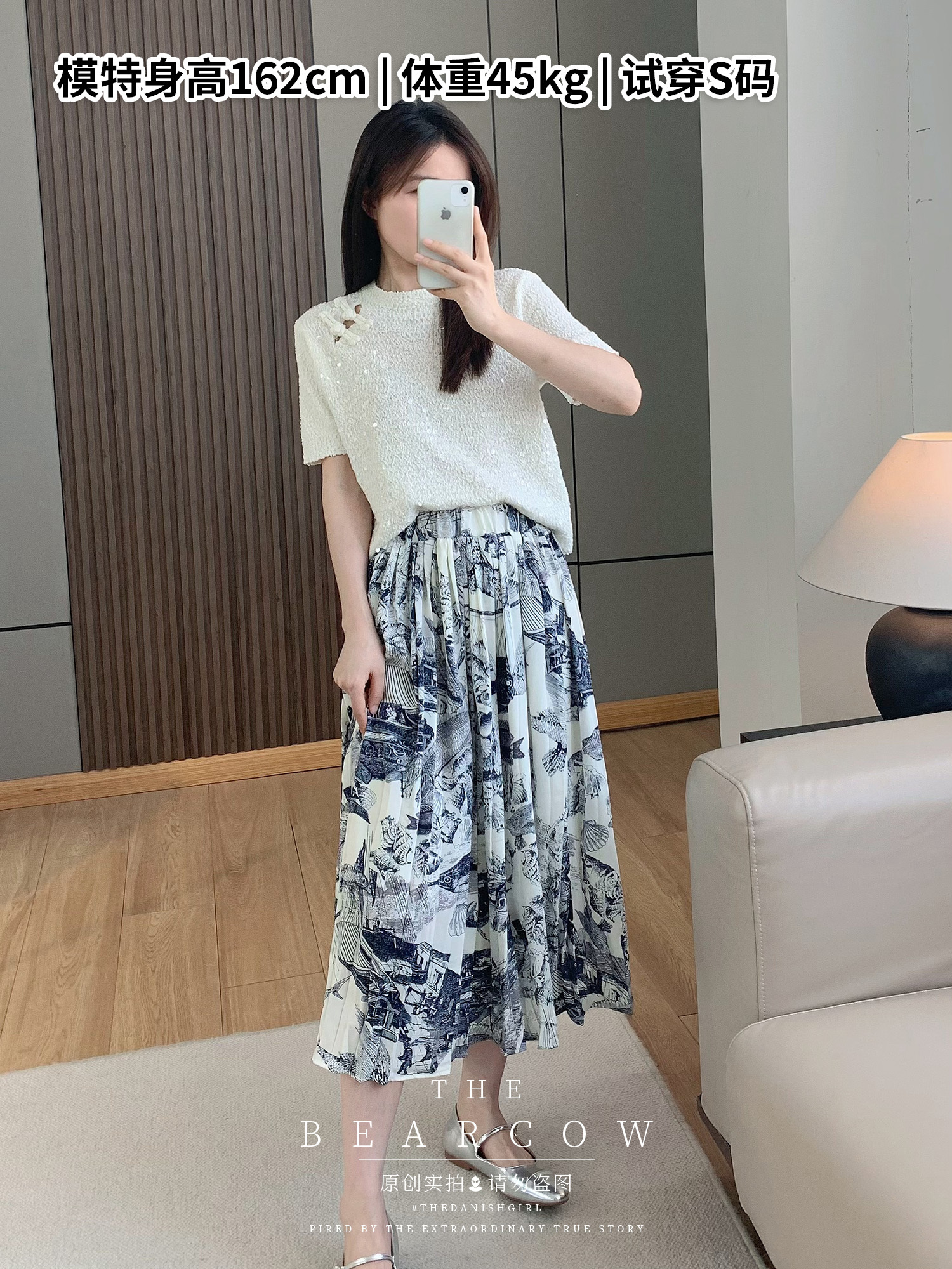 独家贵妇团D同款面料【千吉娜.水墨工艺半生裙】高级宝藏印花 都市小姐姐标配