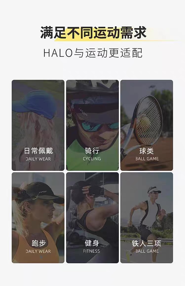 美国halo导汗空顶帽无顶遮阳男女户外运动跑步马拉松网球速干帽子