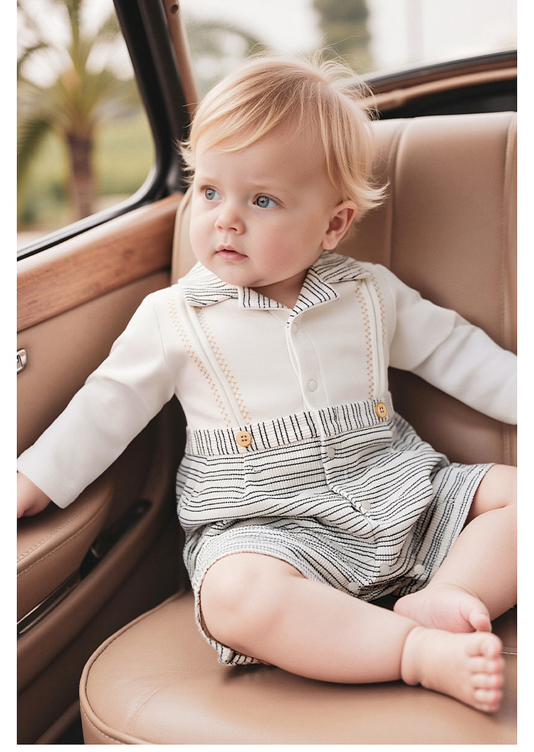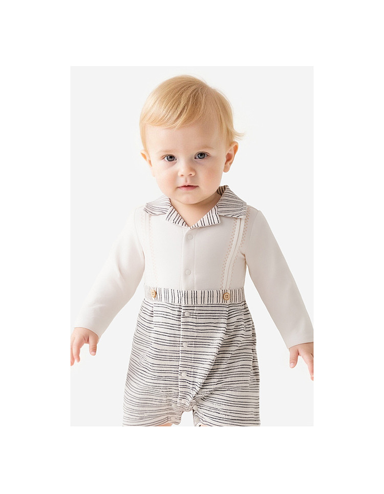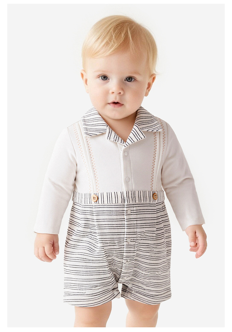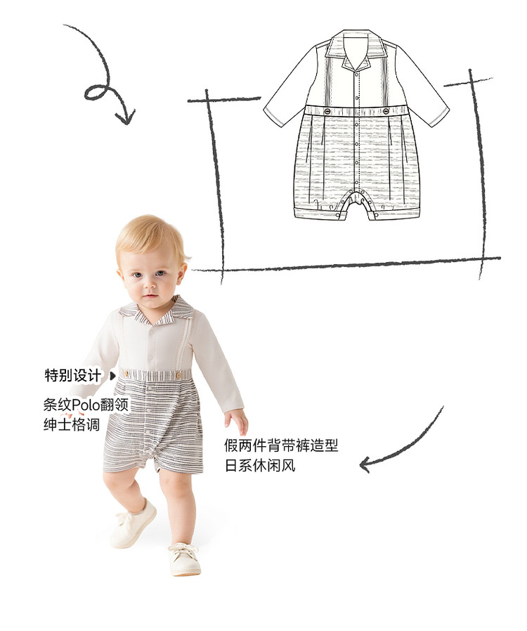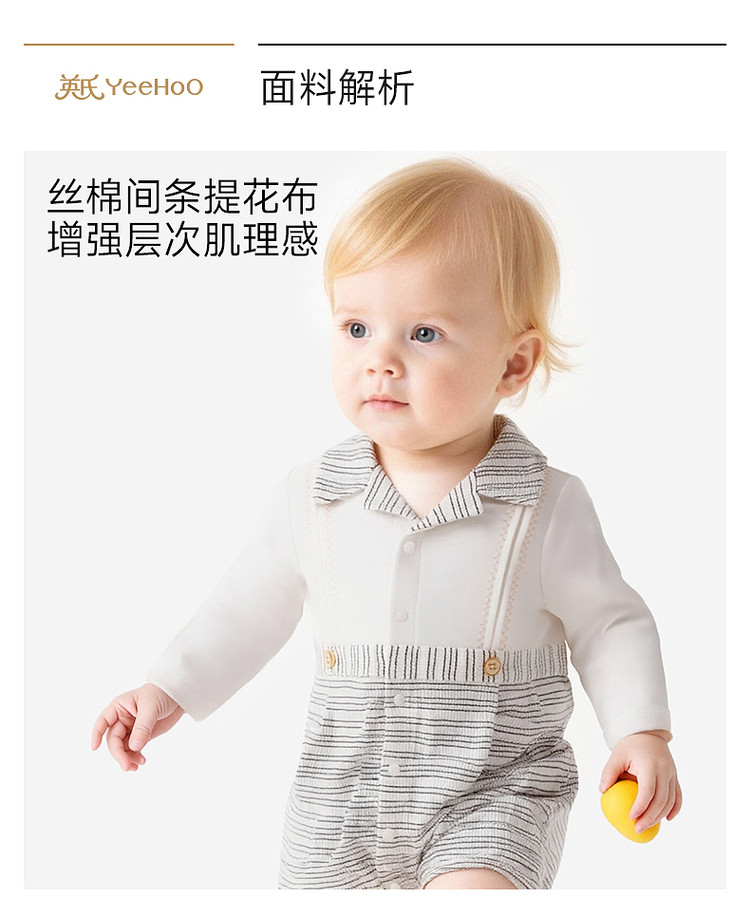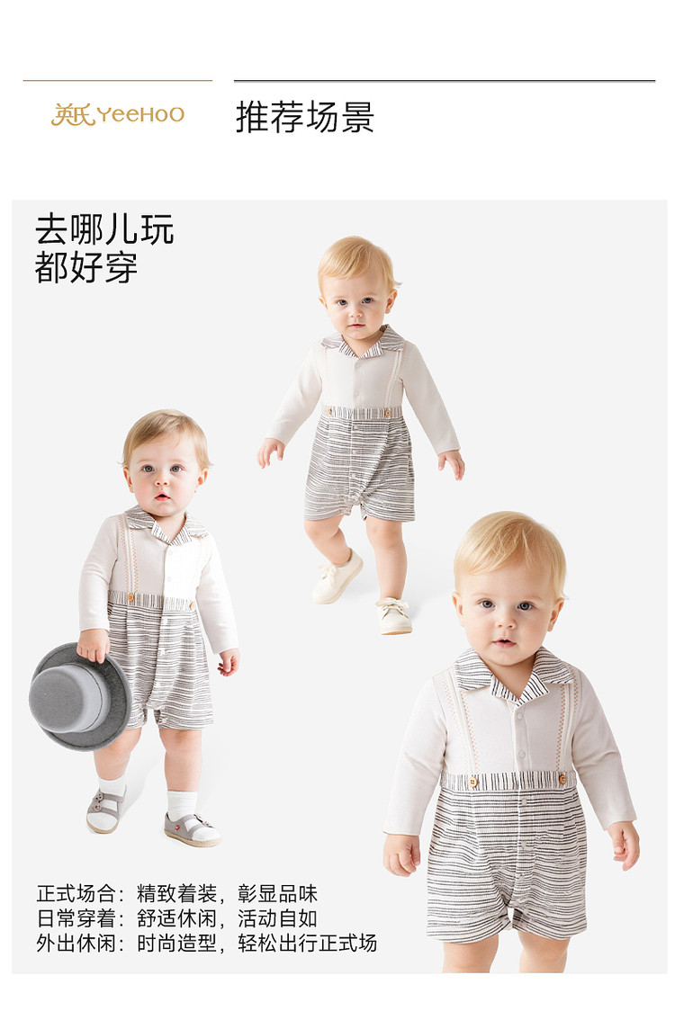 【高定系列】英氏婴儿衣服宝宝连体衣polo领条纹爬服春夏外出哈衣YRHAJ1S031A