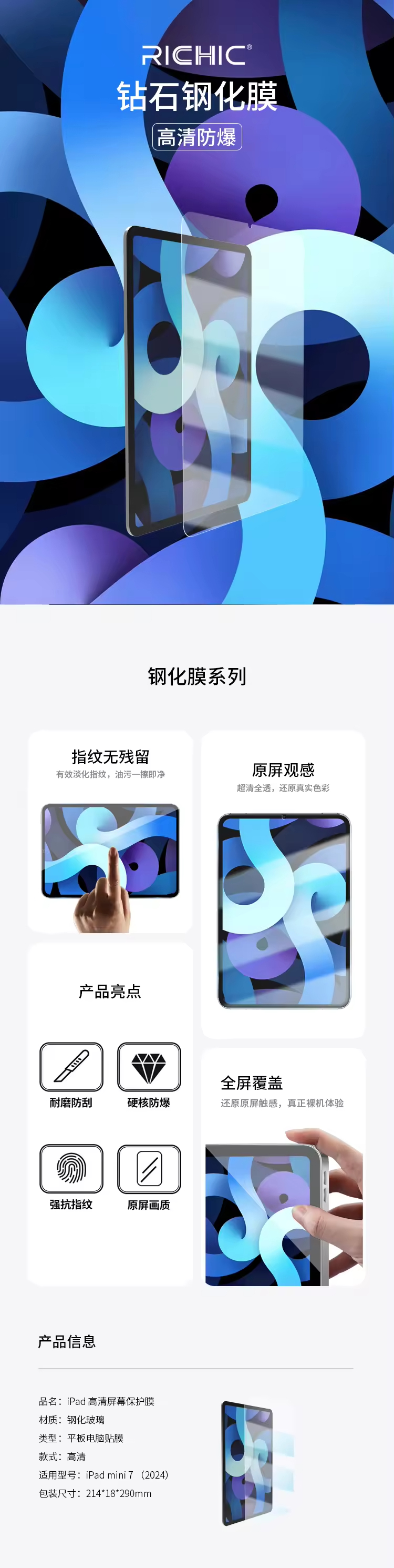 RICHIC锐壳 iPad mini 6/7 高清保护膜