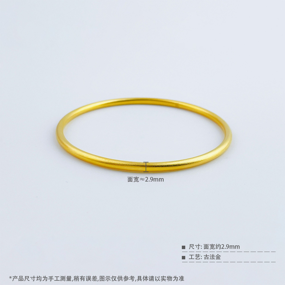 【限时克减150元】足金999 #超轻 古法素圈空心超轻加硬圆管固口手镯(面宽约2.7-3.1mm)(AUQGFSZ00068-1)预售产品下单后不退款不退货不换货不补差价