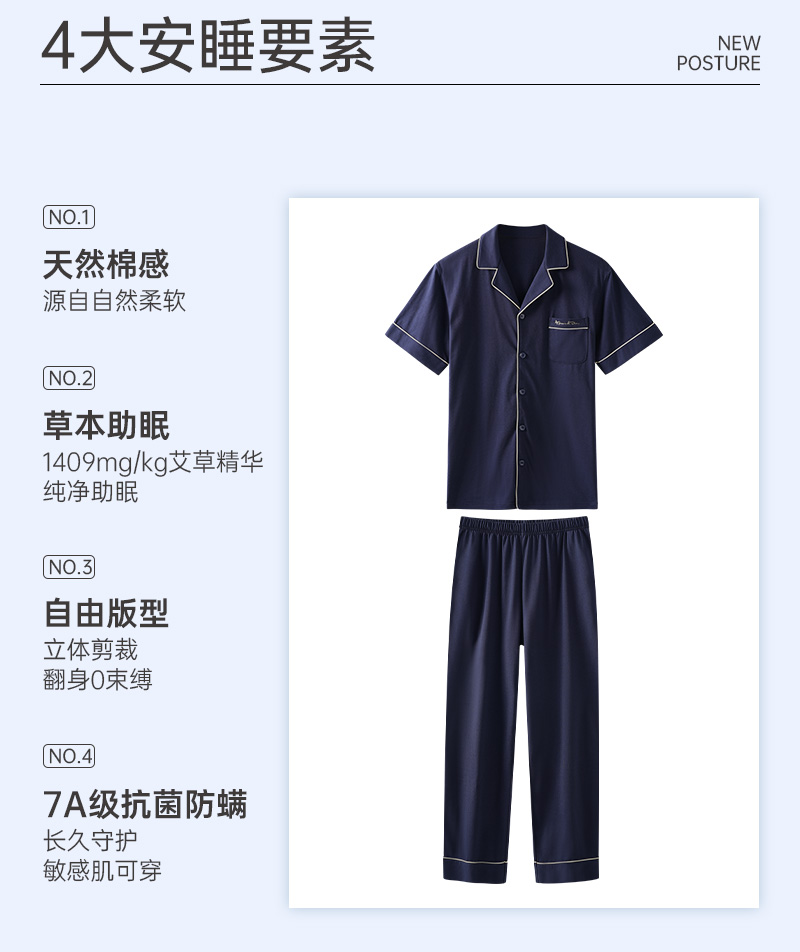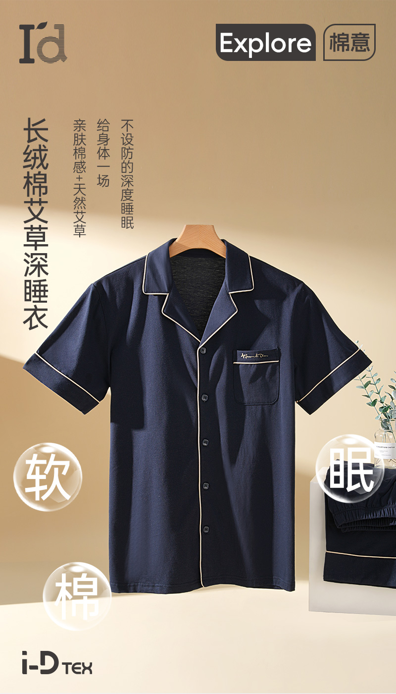 爱帝男士长绒棉短袖长裤套装夏季薄款翻领套装