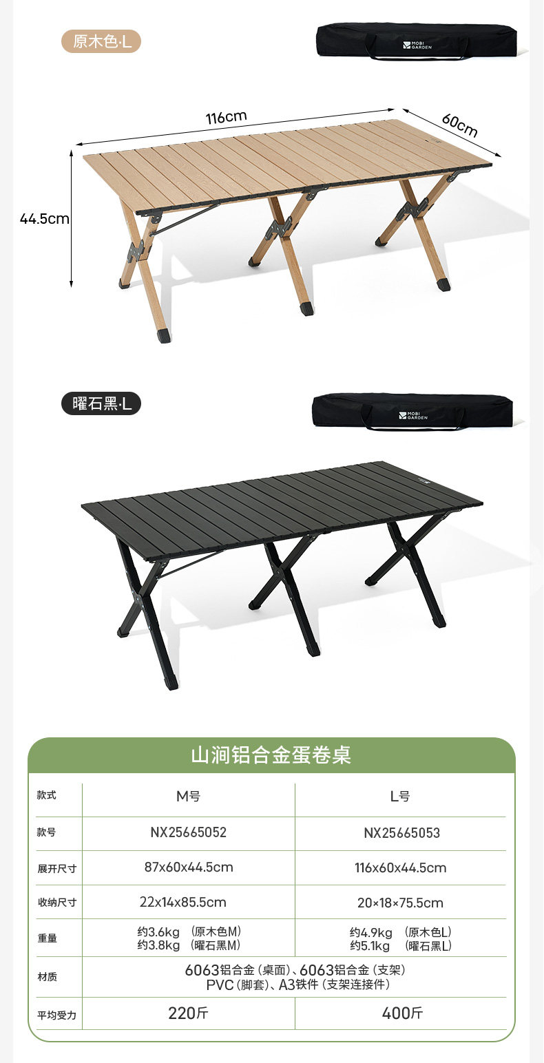牧高笛山涧户外蛋卷桌折叠便携桌子野营桌椅露营长方形庭院小茶桌
