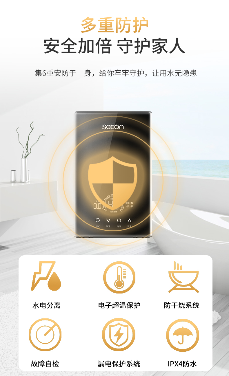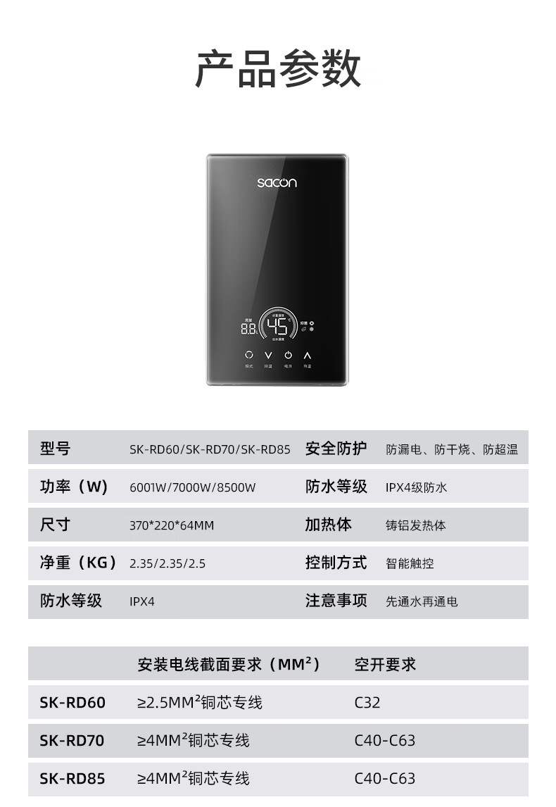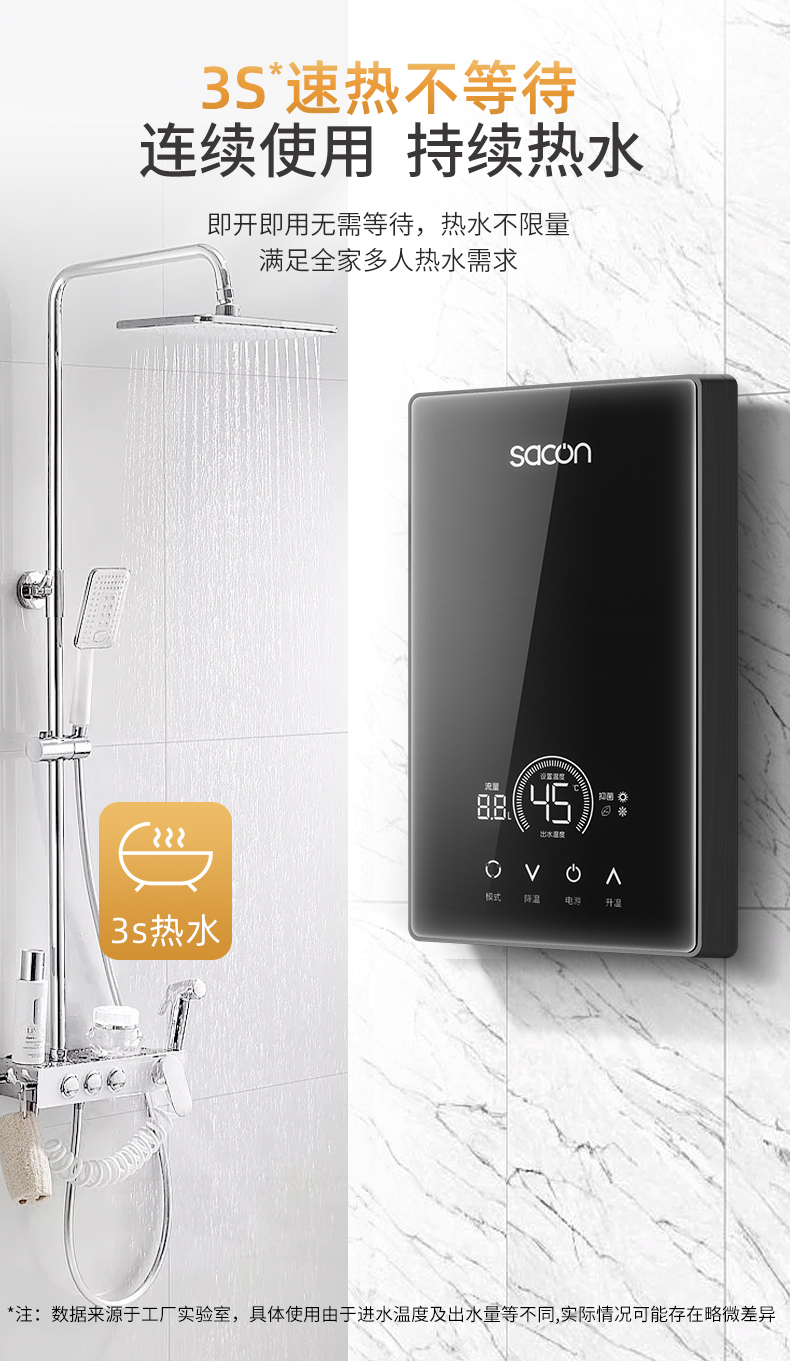 帅康(Sacon)即热式电热水器智能变频恒温过水热家用小型速热免储水淋浴洗澡SK-RD85