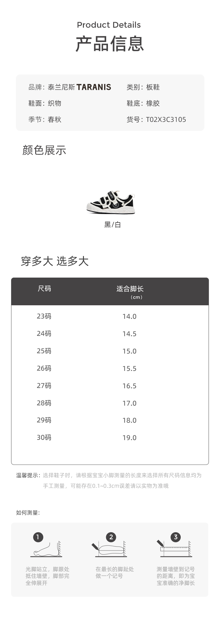 泰兰尼斯秋季小童段经典黑白配板鞋T02X3C3105