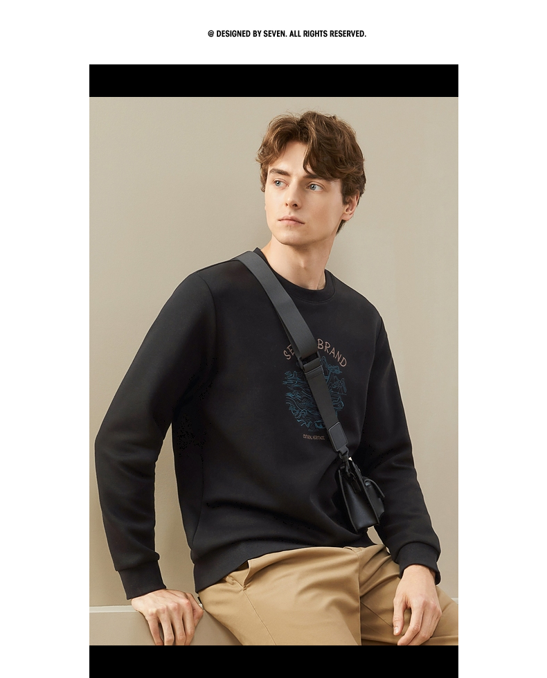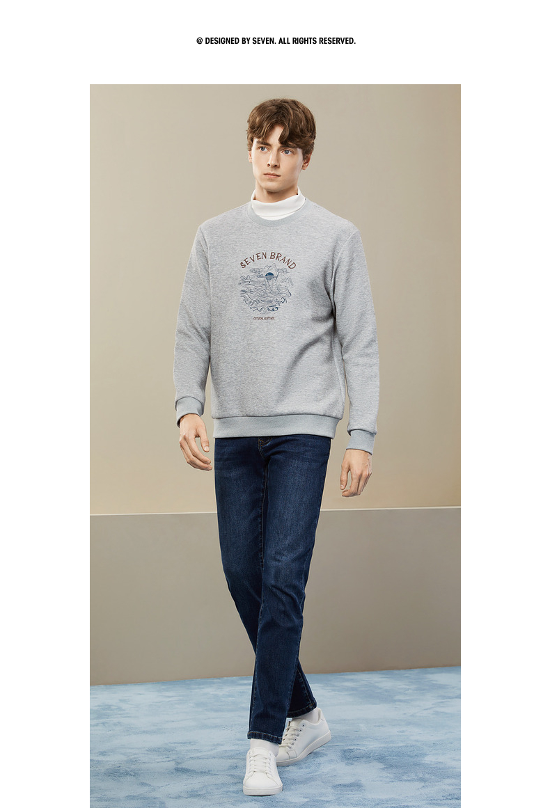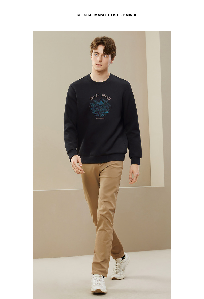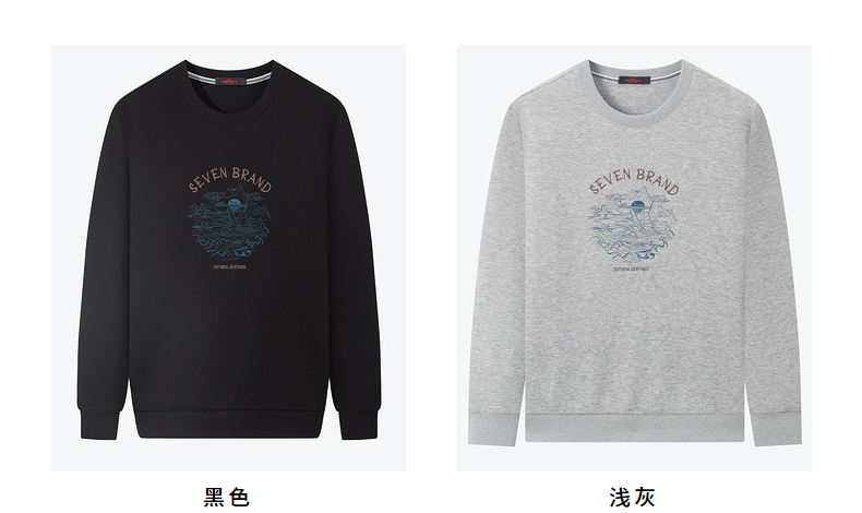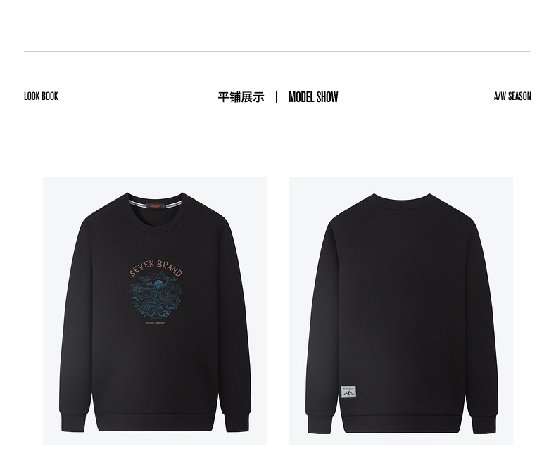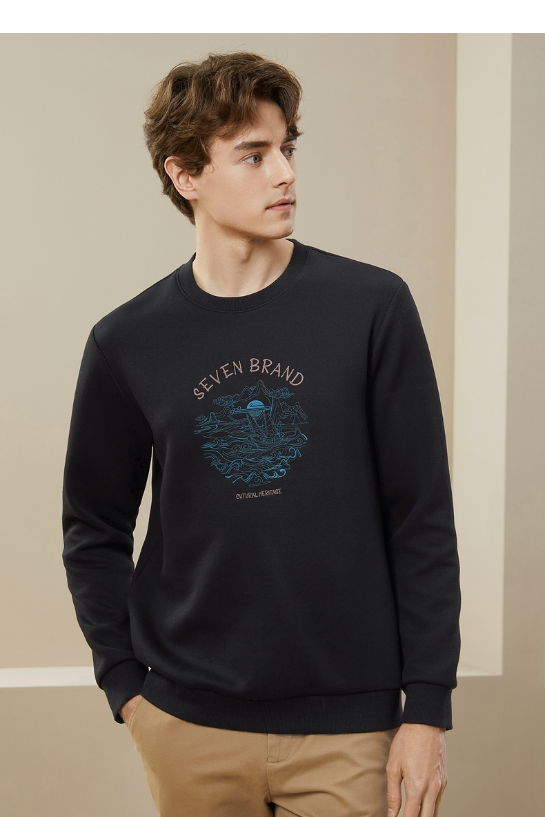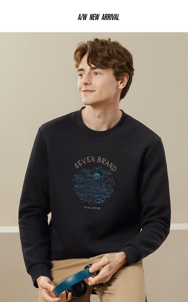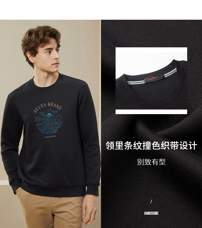 【特价】柒牌男装圆领卫衣男秋季新款时尚休闲百搭撞色绣花套头上衣潮 125W70100