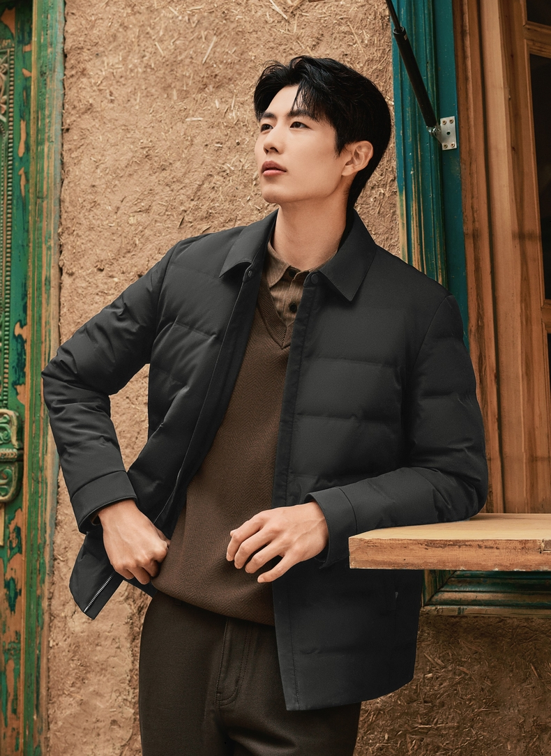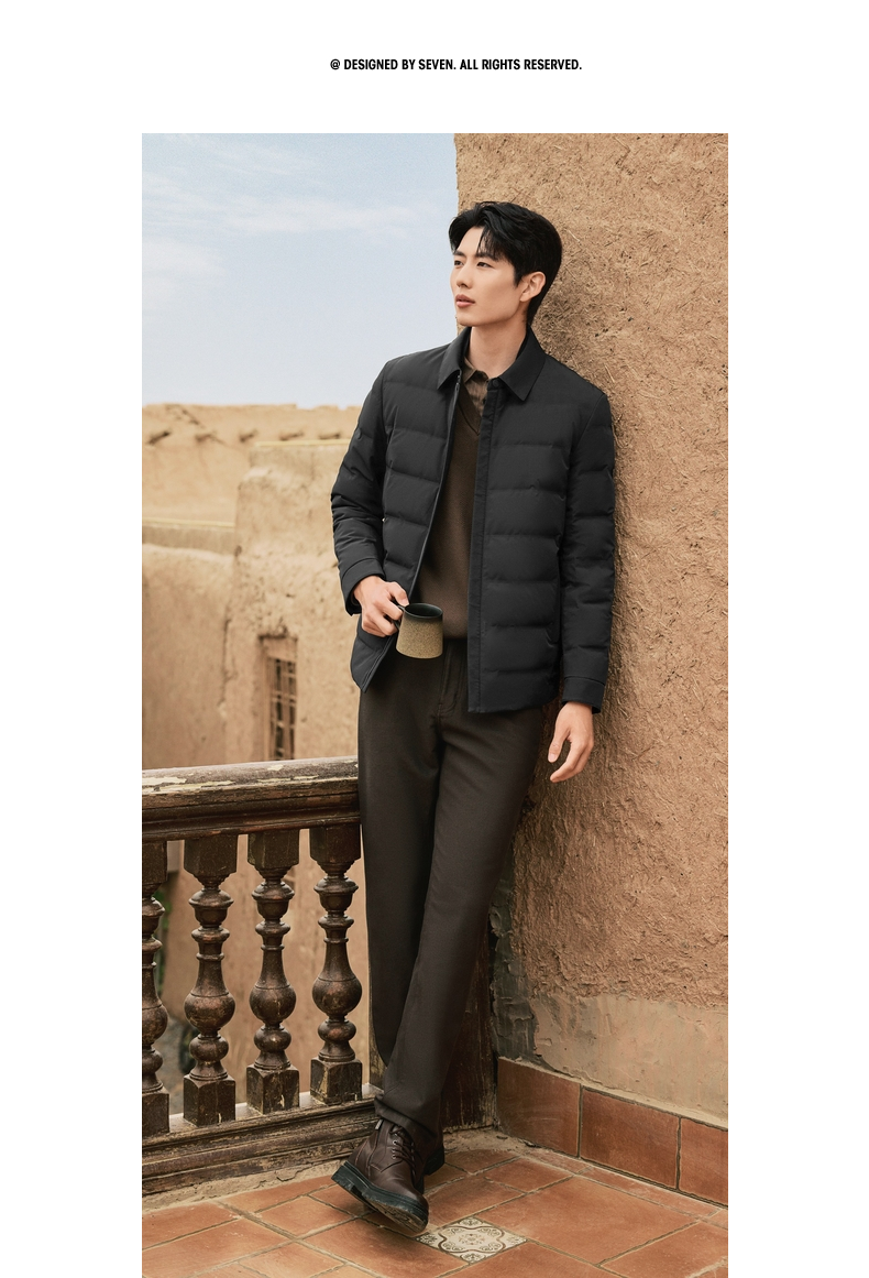 【尼克服/可脱卸兔毛内胆】柒牌翻领双层领抗皱轻微弹保暖外套男129J70760