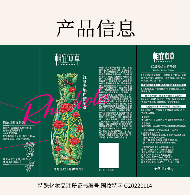 相宜本草红景天焕白dan斑精华 美白提亮去黄精华液