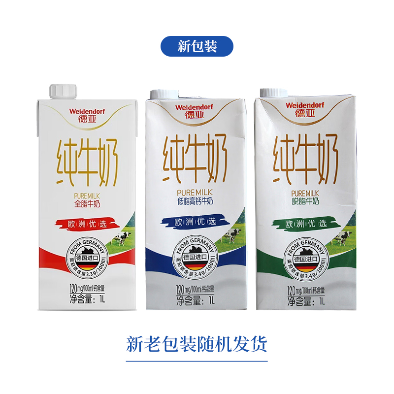 德国德亚低脂/脱脂/全脂牛奶1L 全家营养早餐奶 023165/023166/023167