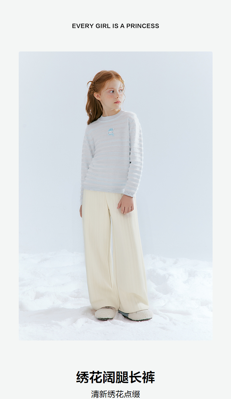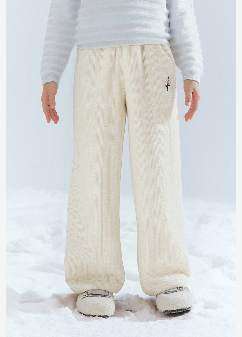笛莎Deesha 童装女童裤子2025冬新款女童绣花阔腿长裤