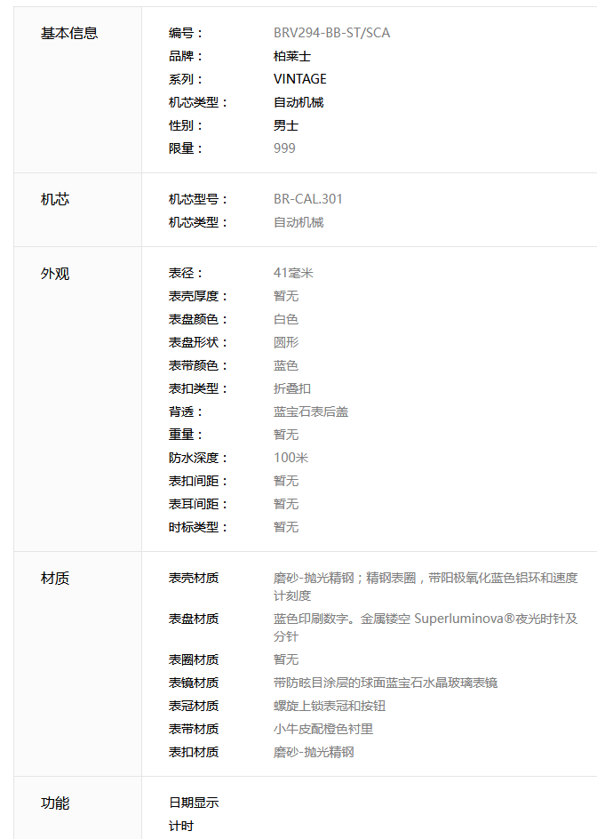 Bell & Ross 柏莱士 VINTAGE 系列 BRV294-BB-ST/SCA 腕表