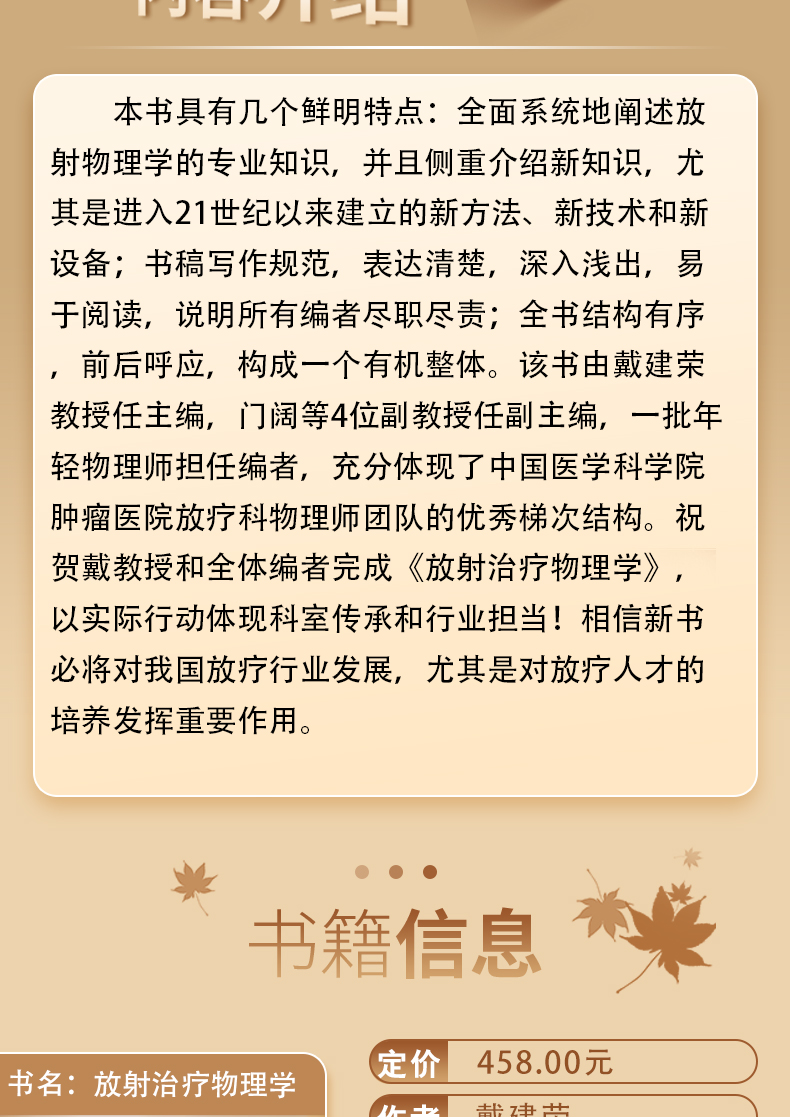 放射治疗物理学 戴建荣 放射物理基础知识 调强适形放疗技术 全国大型医用设备上岗资格考试参考教材 人民卫生出版社9787117343503