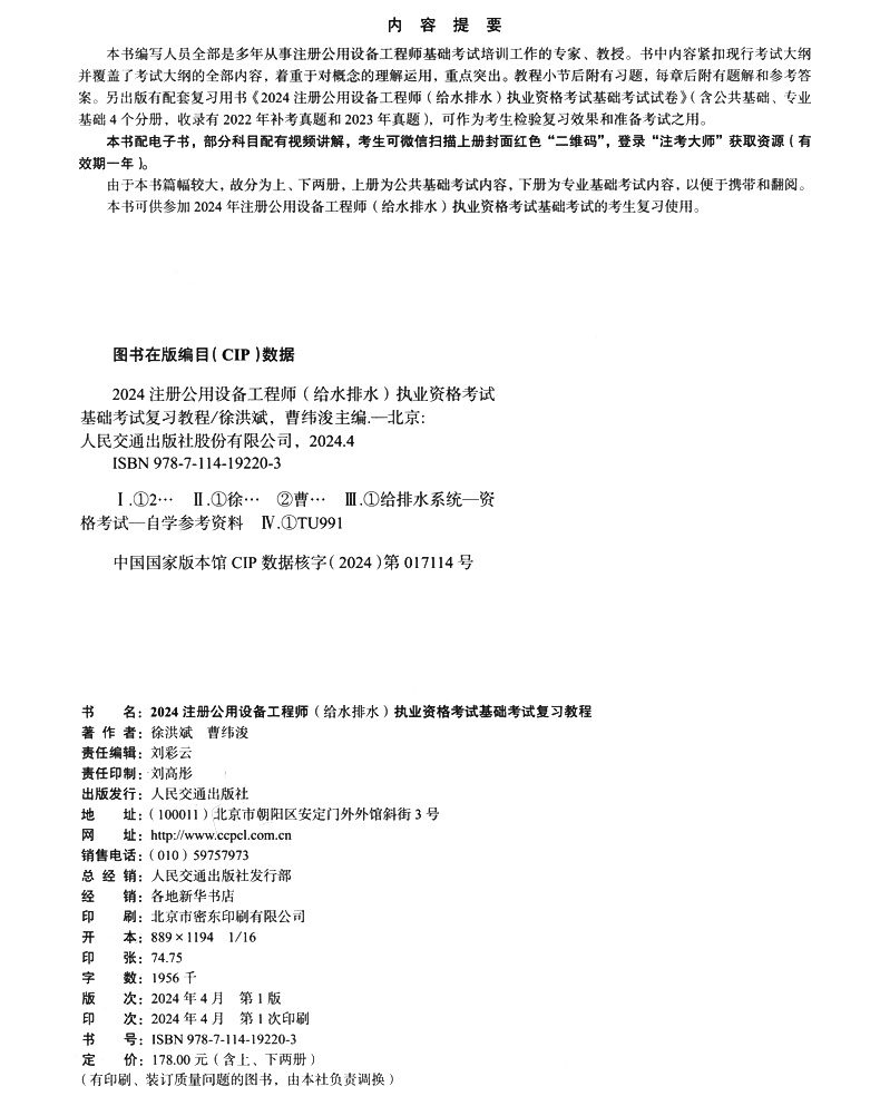 书名:2024注册公用设备工程师(给水排水)执业资格考试基础考试复习教程