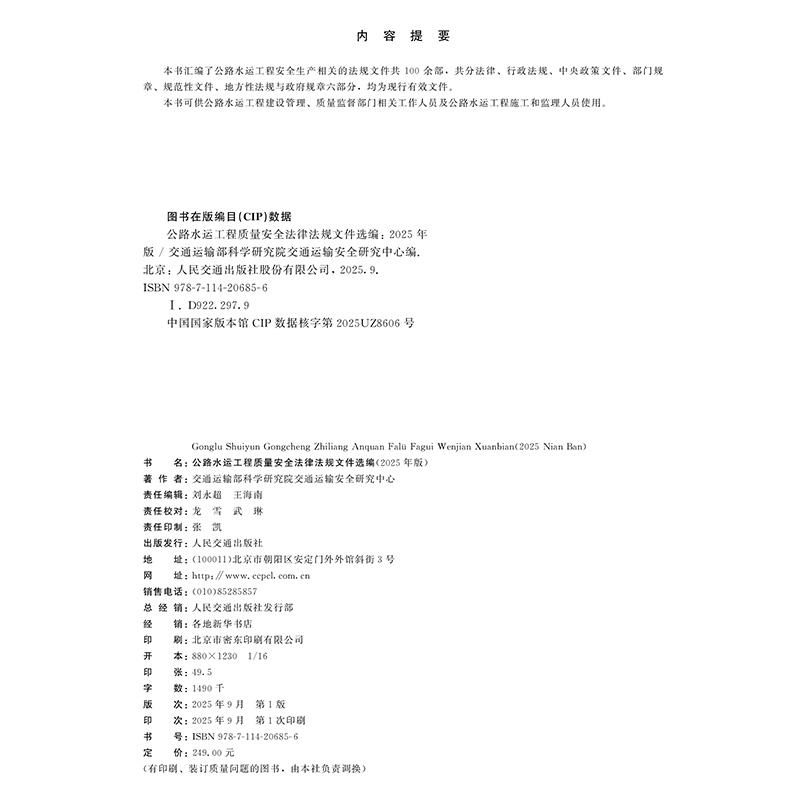书名:公路水运工程质量安全法律法规文件选编 (2025年版)