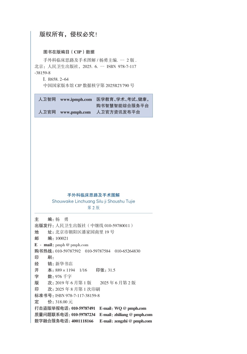 手外科临床思路及手术图解 第2二版 杨勇 主编 本书以大量术中图片和视频为特色 详细介绍伤病的特征和手术要点 人民卫生出版社