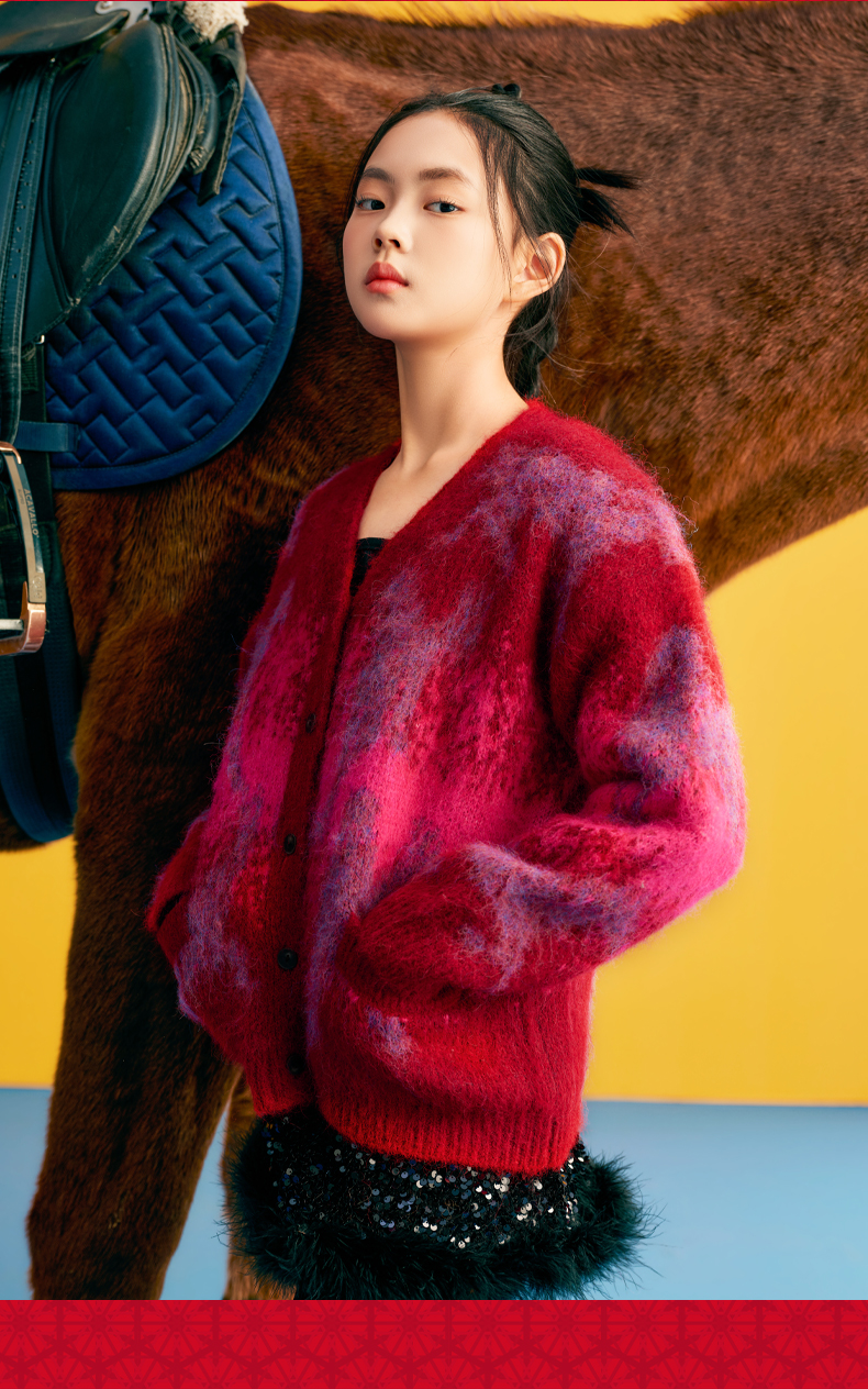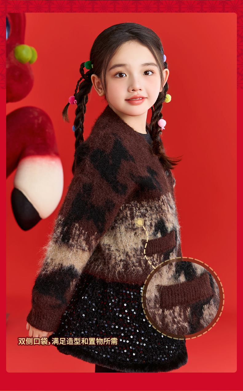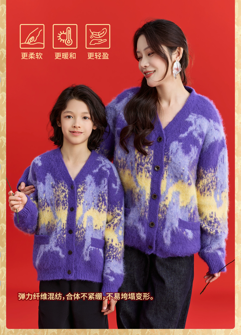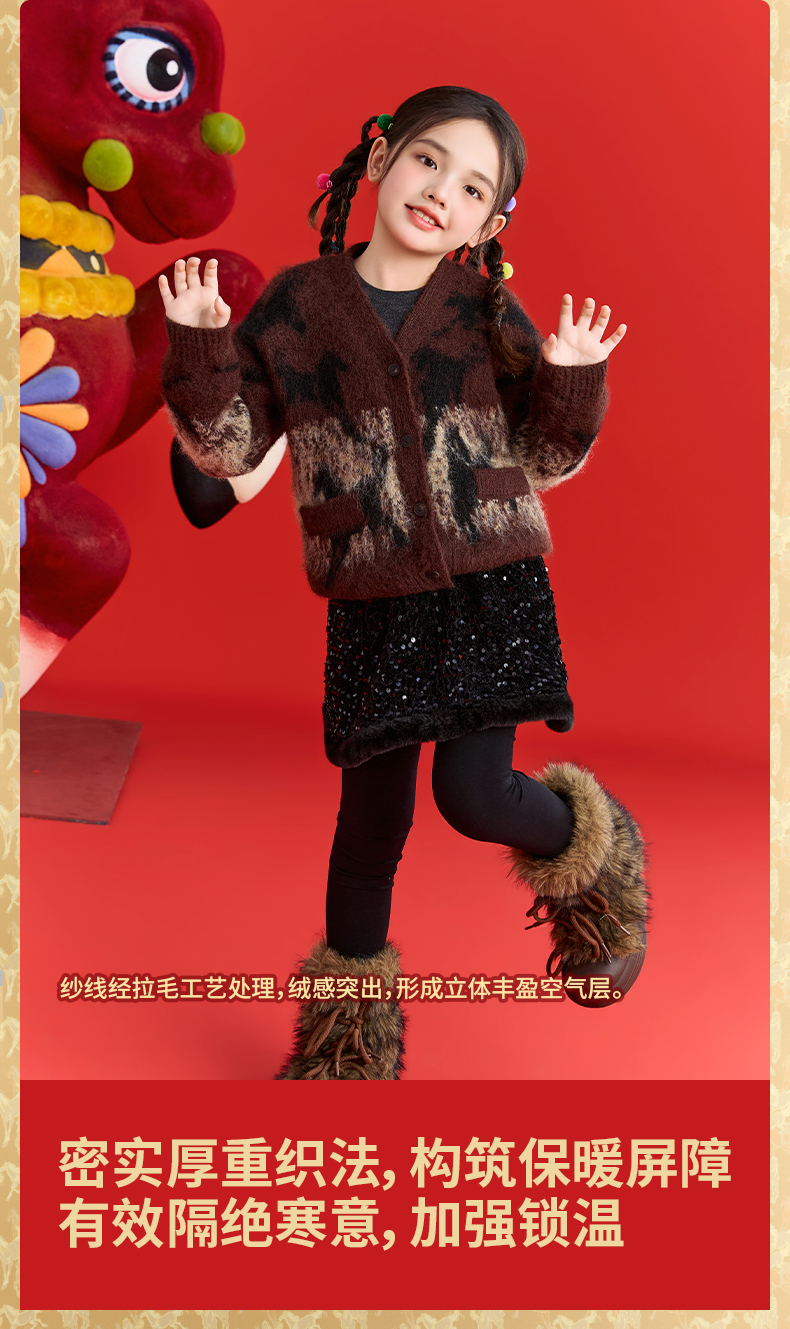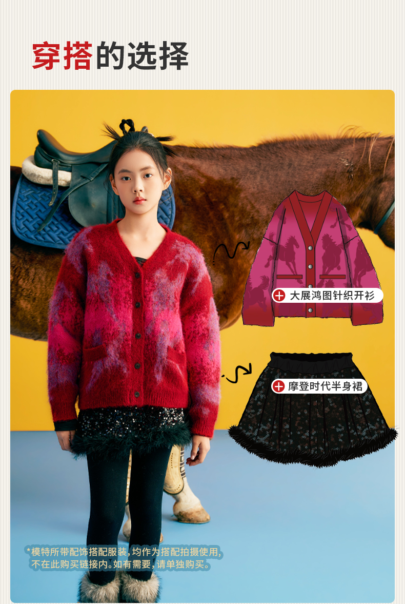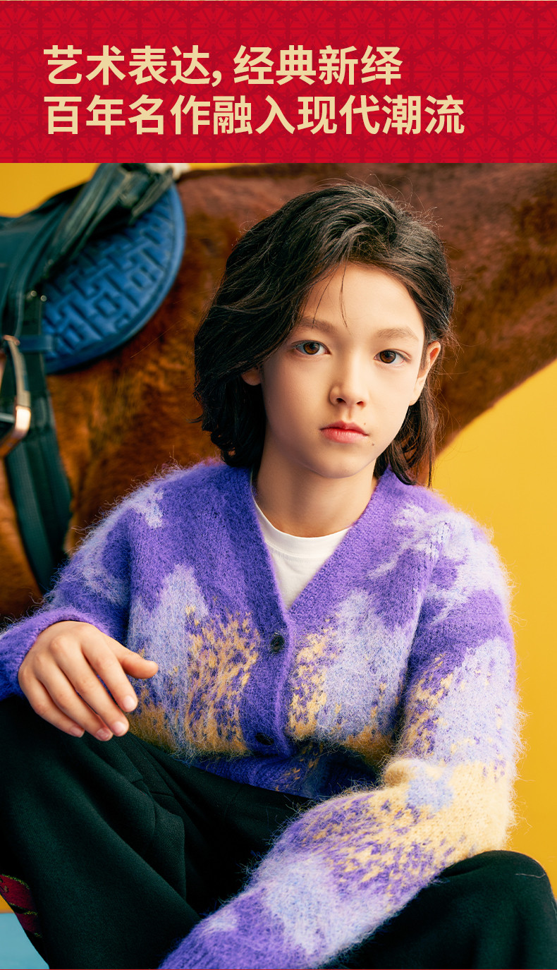 徐悲鸿联名年衣童装针织开衫冬装新中式羊毛毛衣毛衫大展鸿图针织开衫