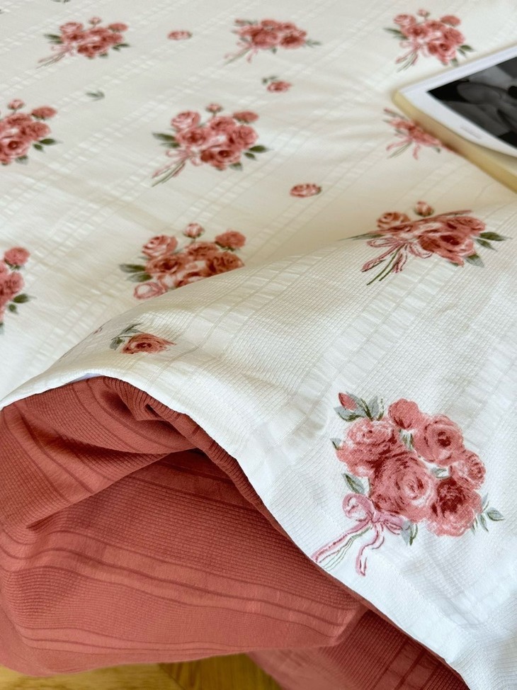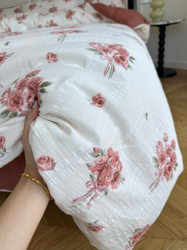 8️⃣春和花野 出口韩国🇰🇷订单款,区别于市场货⚠️ 我们水洗标都是客供韩文标,! 竹纱棉面料,之前都用于韩国客户定制的睡衣上, 客户坚持开发成四件套,出来效果简直绝了!! 蓬松轻盈🉐质感,又绵又软, 令每一寸肌肤都得到无限爱抚💗💗适用于一年四季哦,强烈安利!