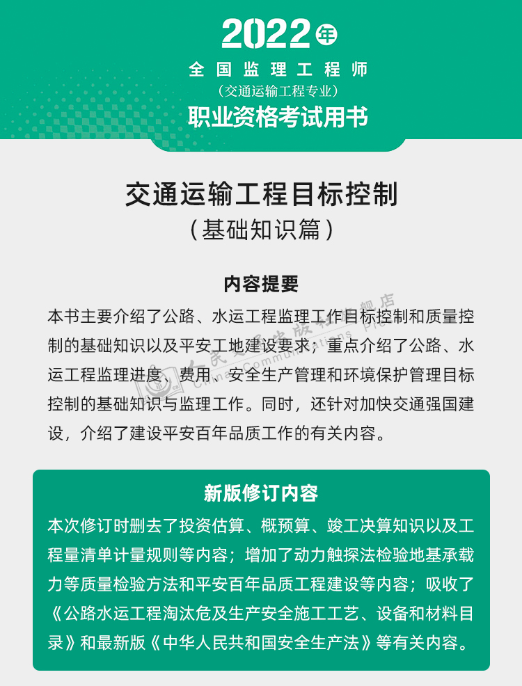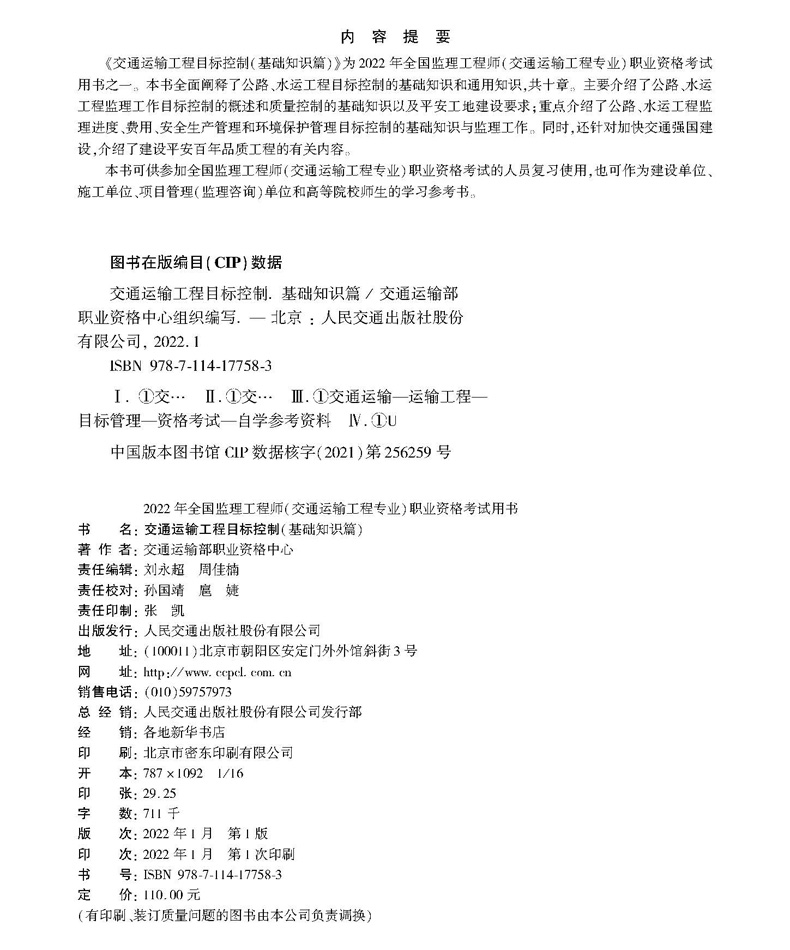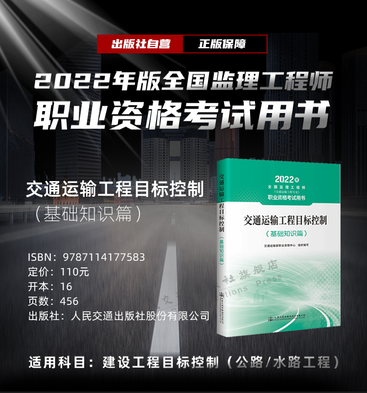 2022年交通运输工程监理工程师职业资格考试用书 资格中心考试培训用书 交通运输工程目标控制(基础知识篇)公路+水运方向