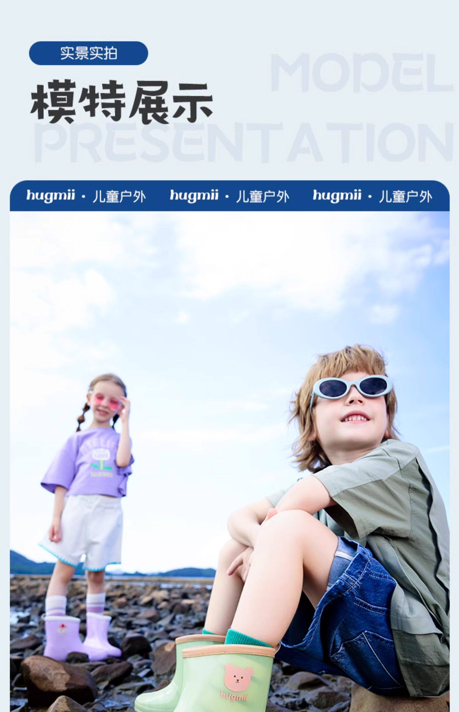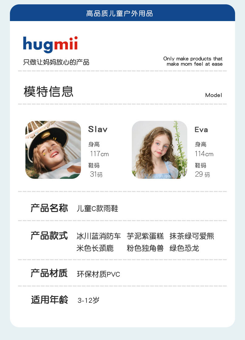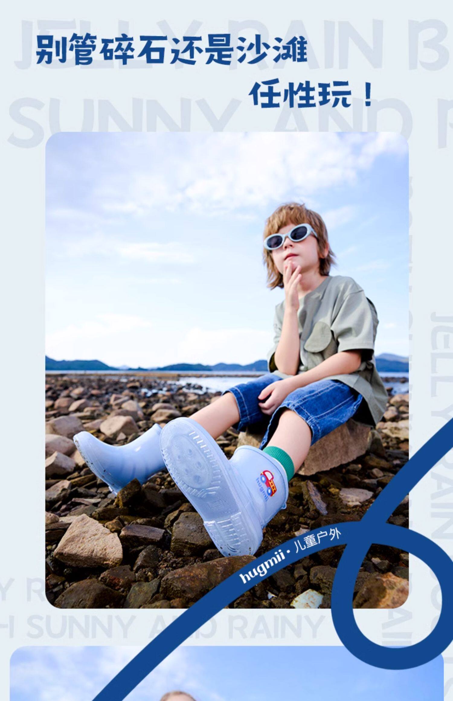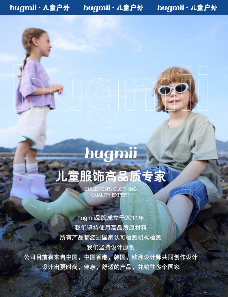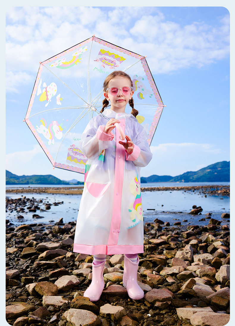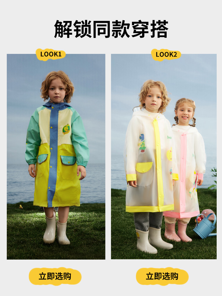 清仓!!【可爱环保,防风护雨】hugmii哈格美儿童雨鞋系列女童超轻云感雨披男童上学专用大帽檐雨衣带书包位