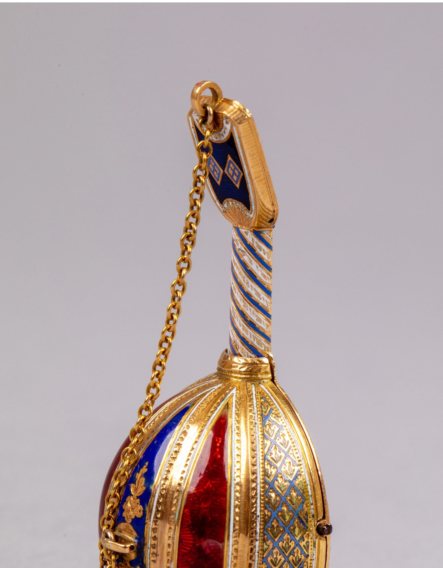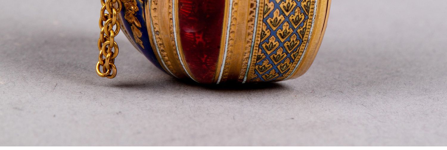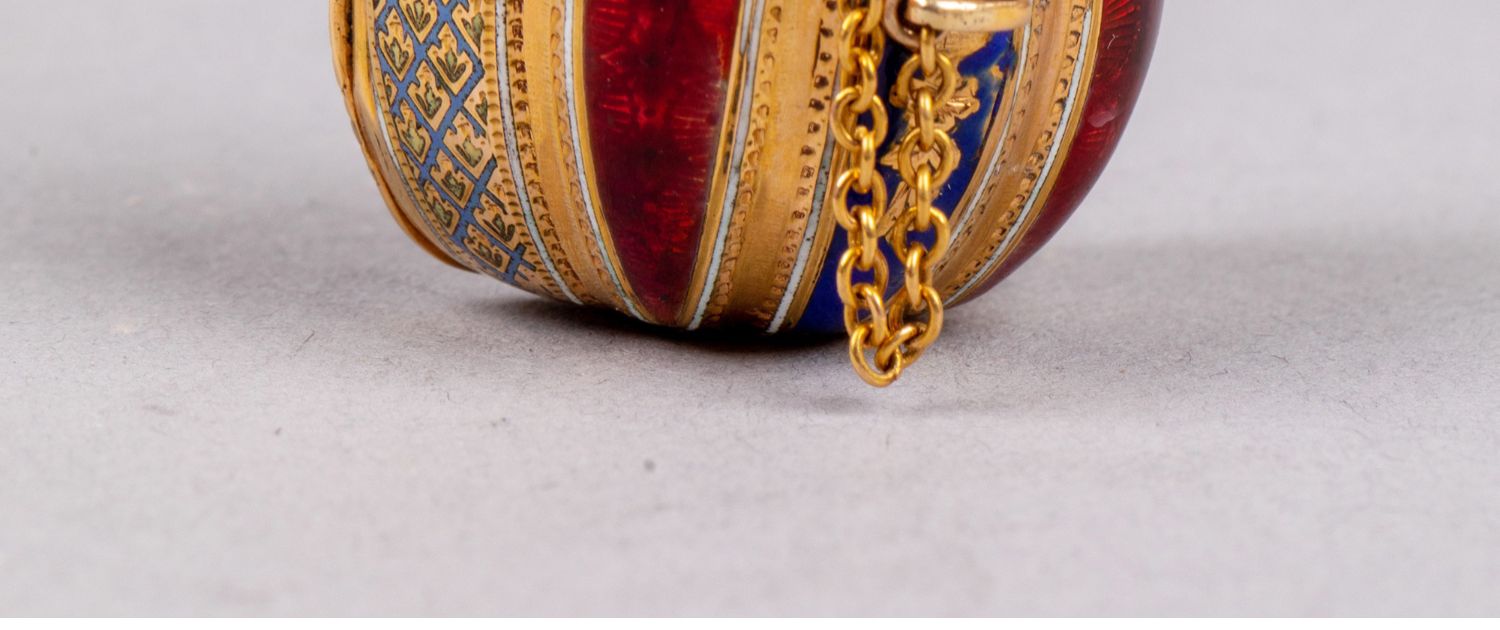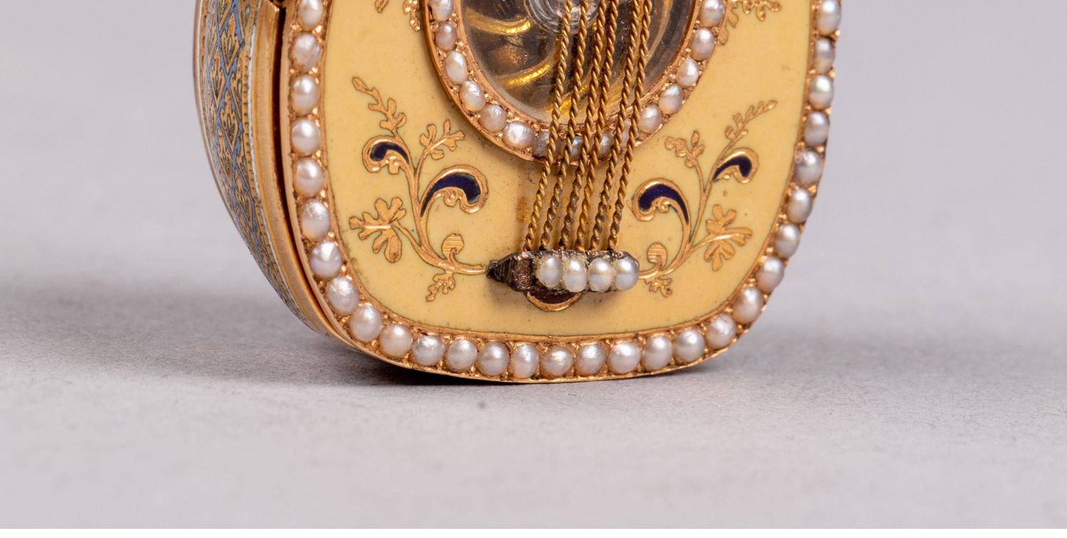 独角鹿西洋古董欧洲黄金镶嵌彩色珐琅珍珠曼陀铃造型怀表