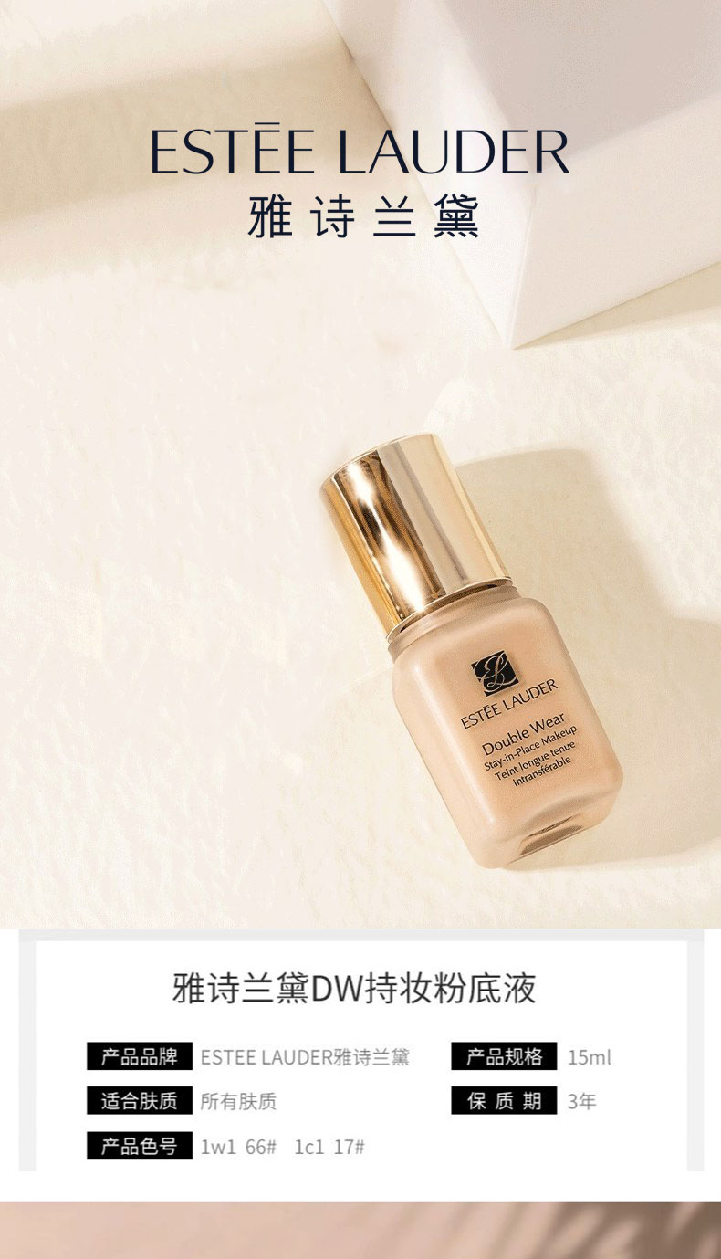 【品牌】 雅诗兰黛 【商品名称】 雅诗兰黛DW持妆粉底液大中样15ml 香港直邮 【规格】:#1C1(粉调一白) #1W1(黄调一白) 【产地】:法国(实际收到为准) 【批次/限用日期】:有效期2028-2 【注!!!】批次更新较快,具体以实收批次日期为准 【版本】:免税版 【包装方式】:单独 无塑封 【快递】:韵达快递 【发货地】:香港 【运费模板】: 新疆,宁夏,内蒙古,甘肃+5,其他地区包邮 【不发货地区】:港澳台 西藏 【发货时效】:72小时 【售后政策】:支持七天无理由退换(不影响二次销售的基础上) |