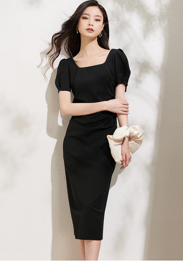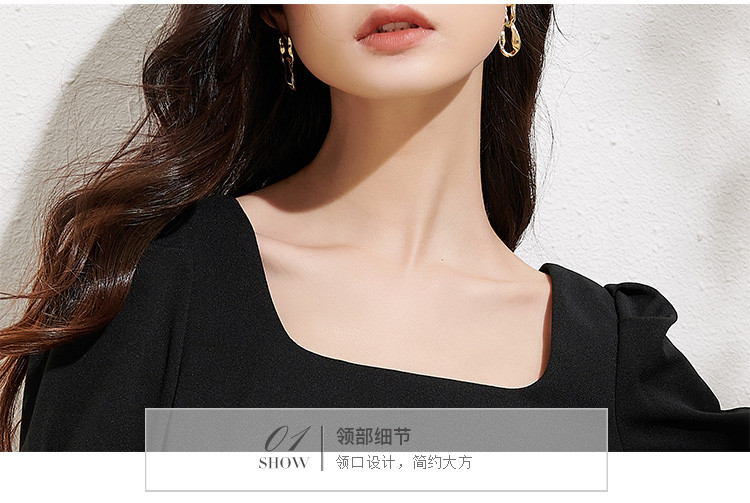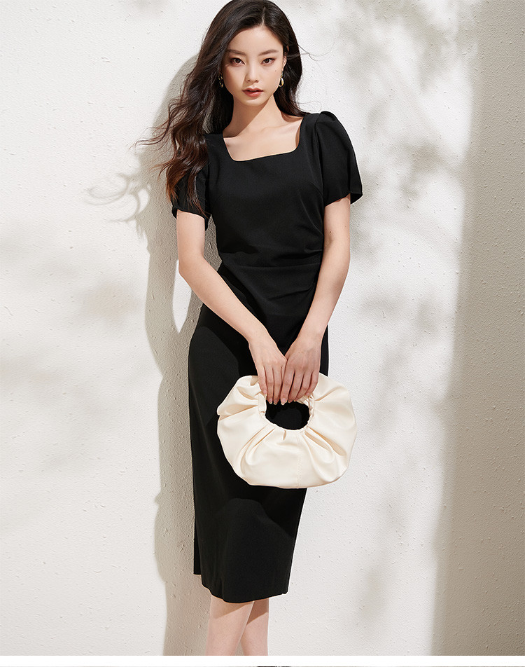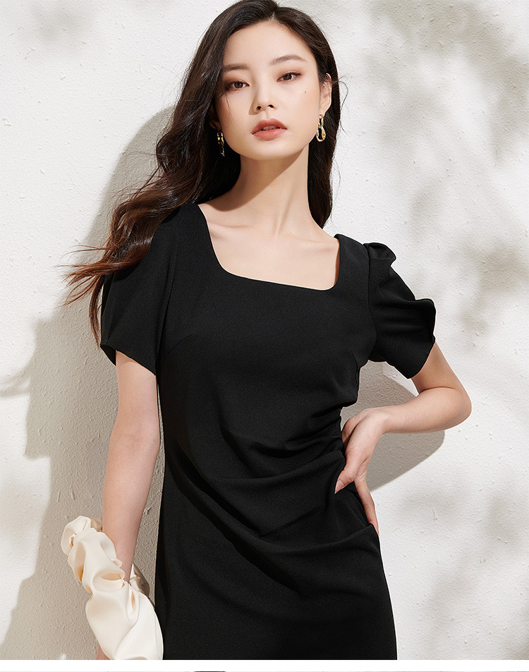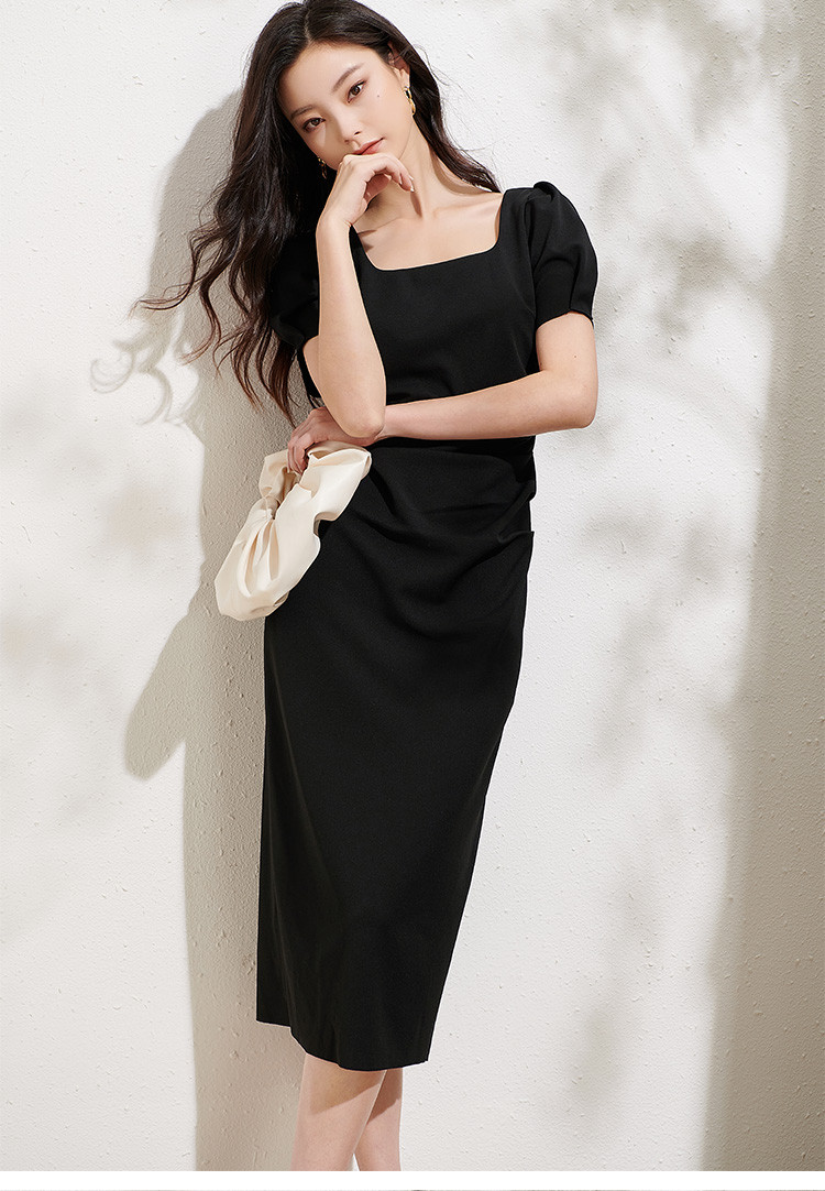 剩L/XL 芳外法式复古方领裙子2025夏季新款女收腰显瘦气质连衣裙