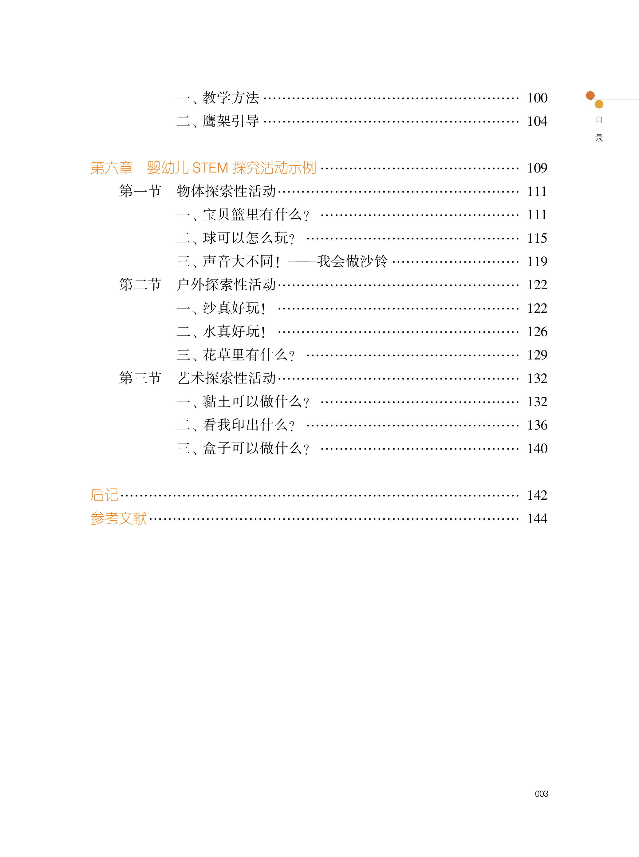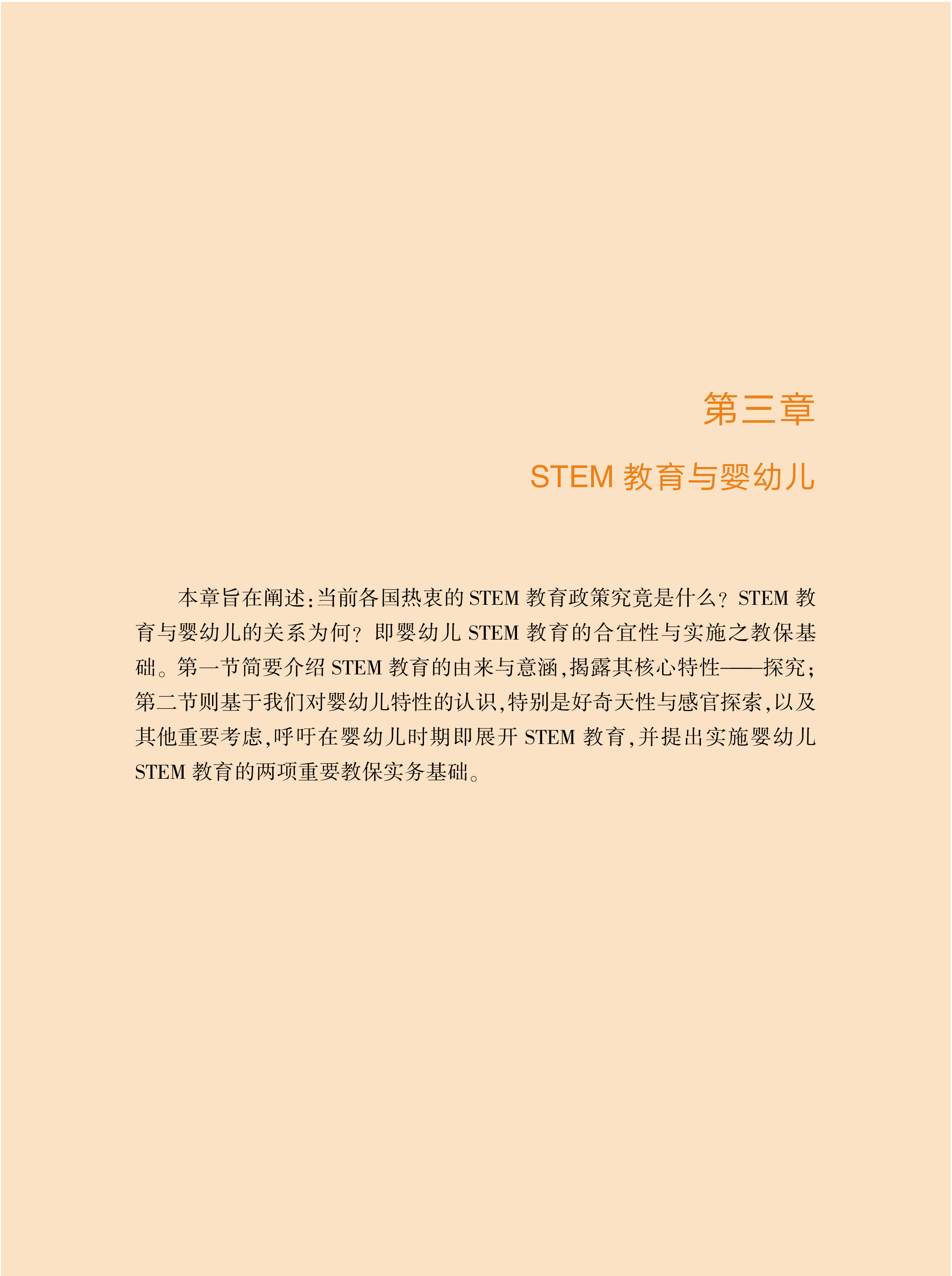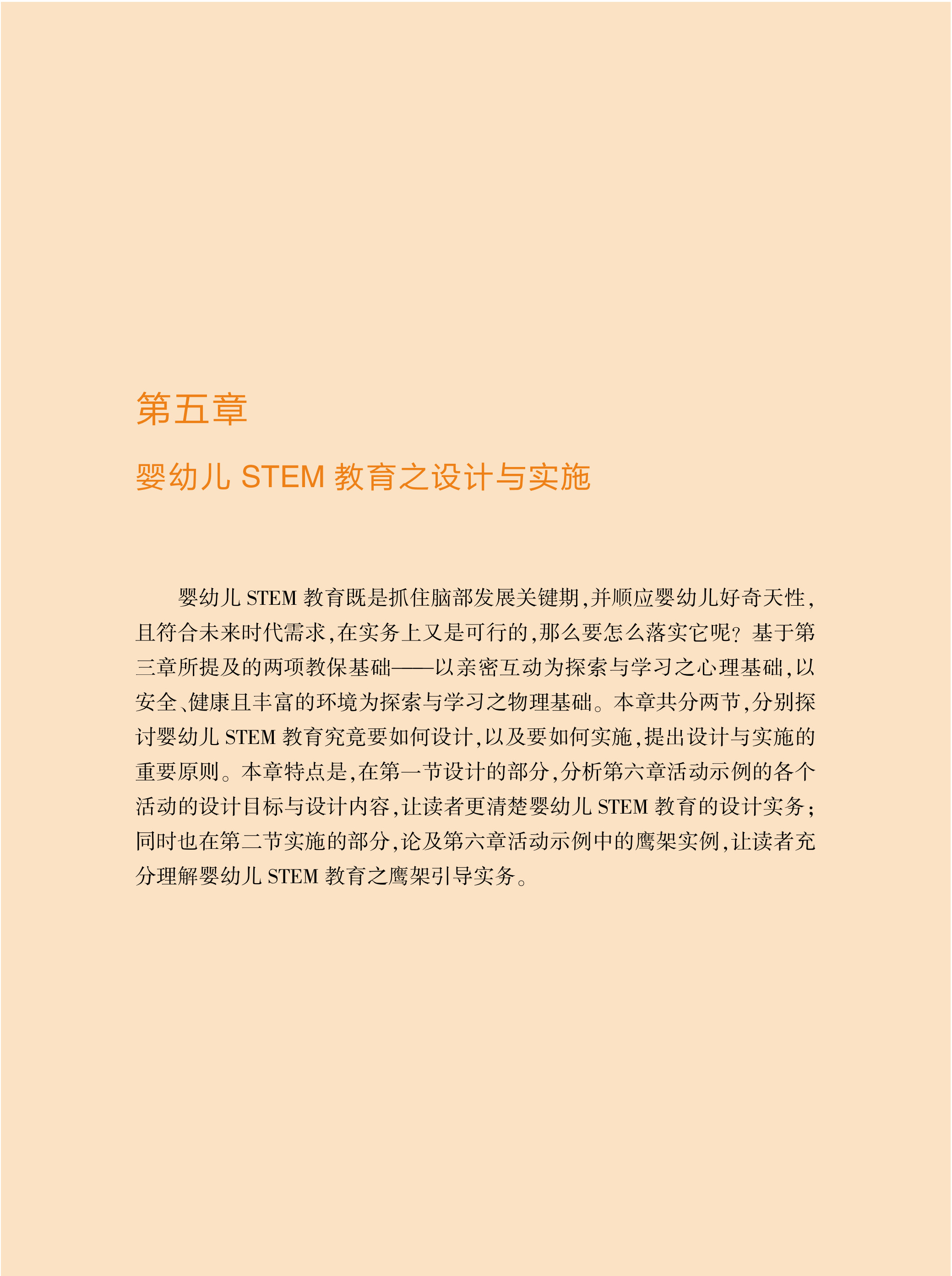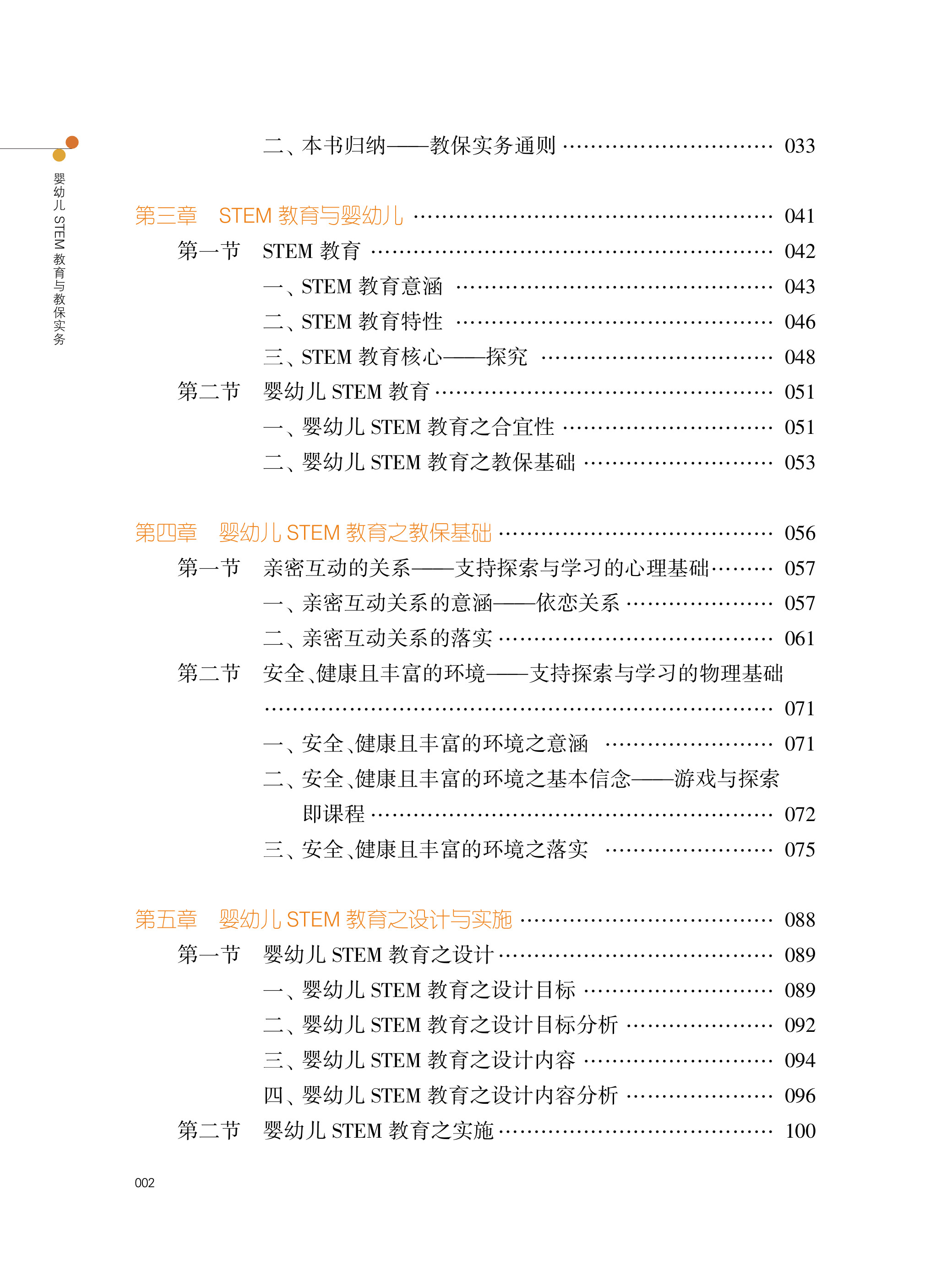 《婴幼儿STEM教育与教保实务》全书共分六章:婴幼儿发展概况、婴幼儿教保实务、STEM教育与婴幼儿、婴幼儿STEM教育之教保基础、婴幼儿STEM教育之设计与实施、婴幼儿STEM探究活动示例。