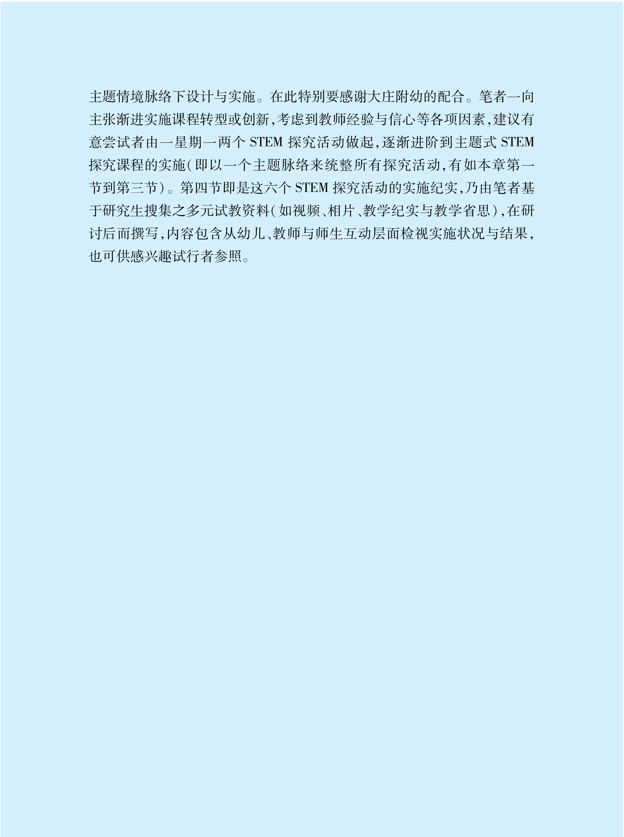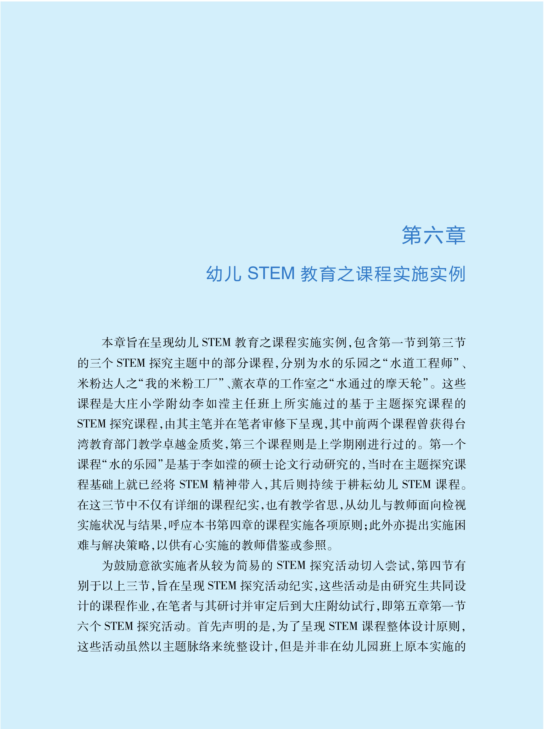 无论是对想实施主题式STEM教育的有经验主题课程教师,或是对想从一两个活动开始尝试STEM教育的新手教师,都有所帮助;更可以作为师资培育的教科书如教育实习、教材教法与幼儿园课程设计等科目,也可作为在职进修、研习与培训的材料,当然也是硕士班课程与教学专题的良好教材。