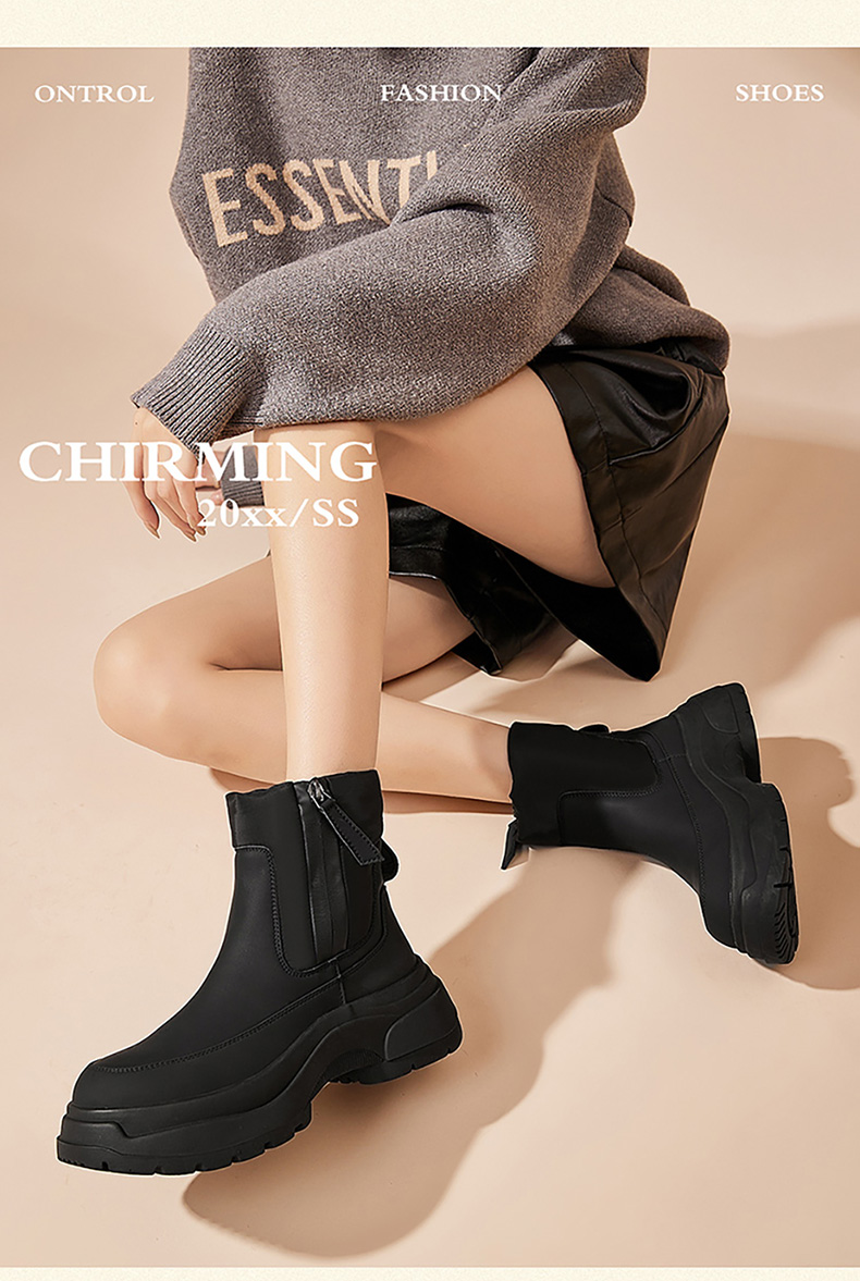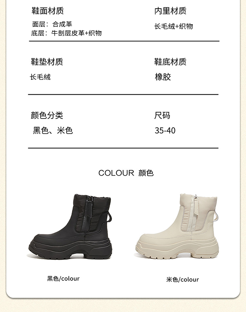 星期六时尚利落拼接绒里厚底短靴SS341181GM