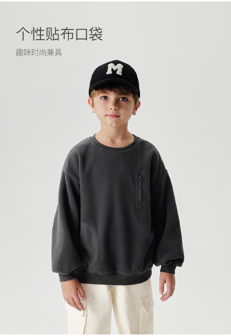 马克珍妮男童山系户外摇粒绒卫衣儿童卫衣2024年秋冬新款241058
