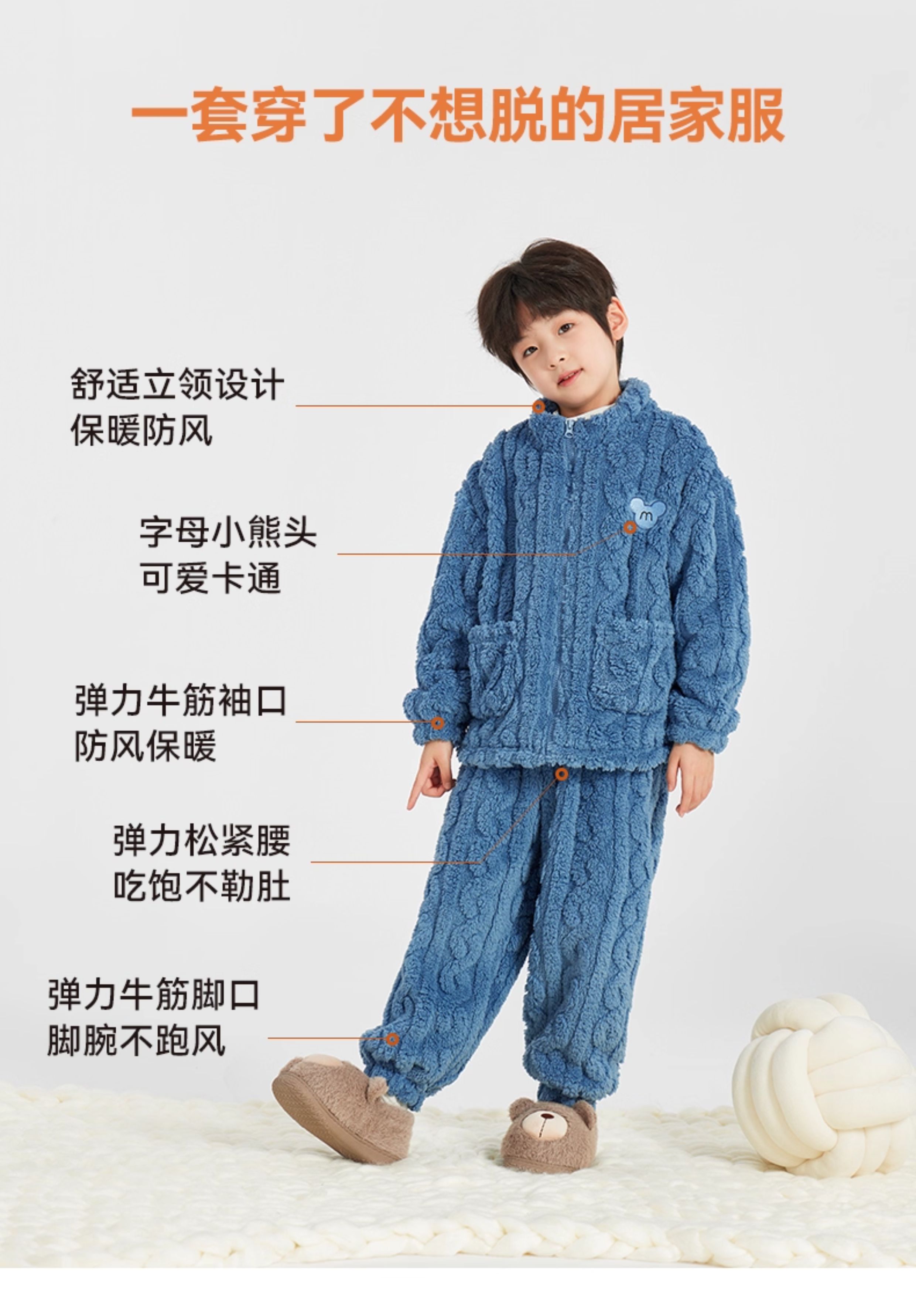 【件件底价,童装双倍积分】多多家男童家居服睡衣套装2025秋冬新款儿童珊瑚绒法兰绒加厚冬装9867