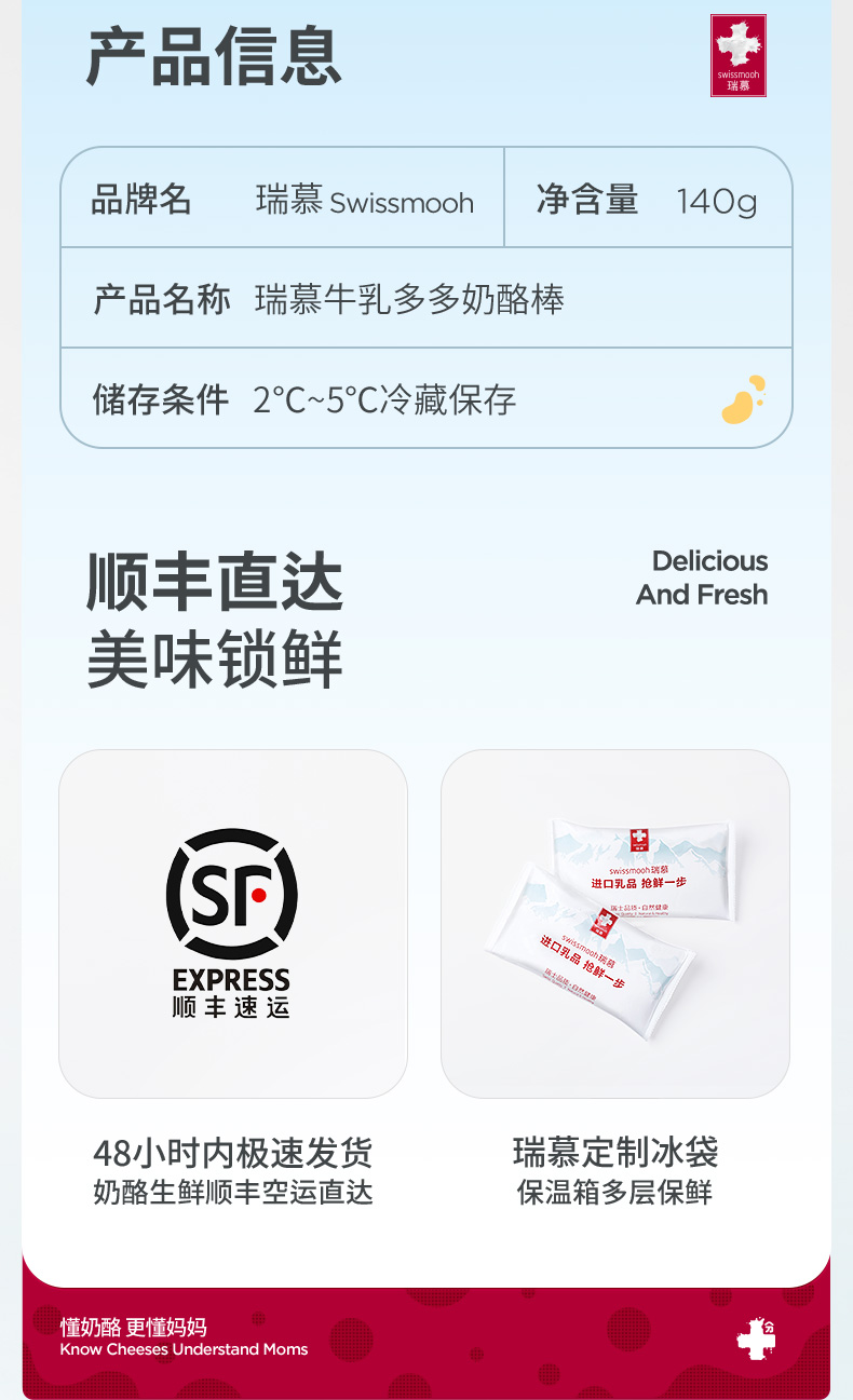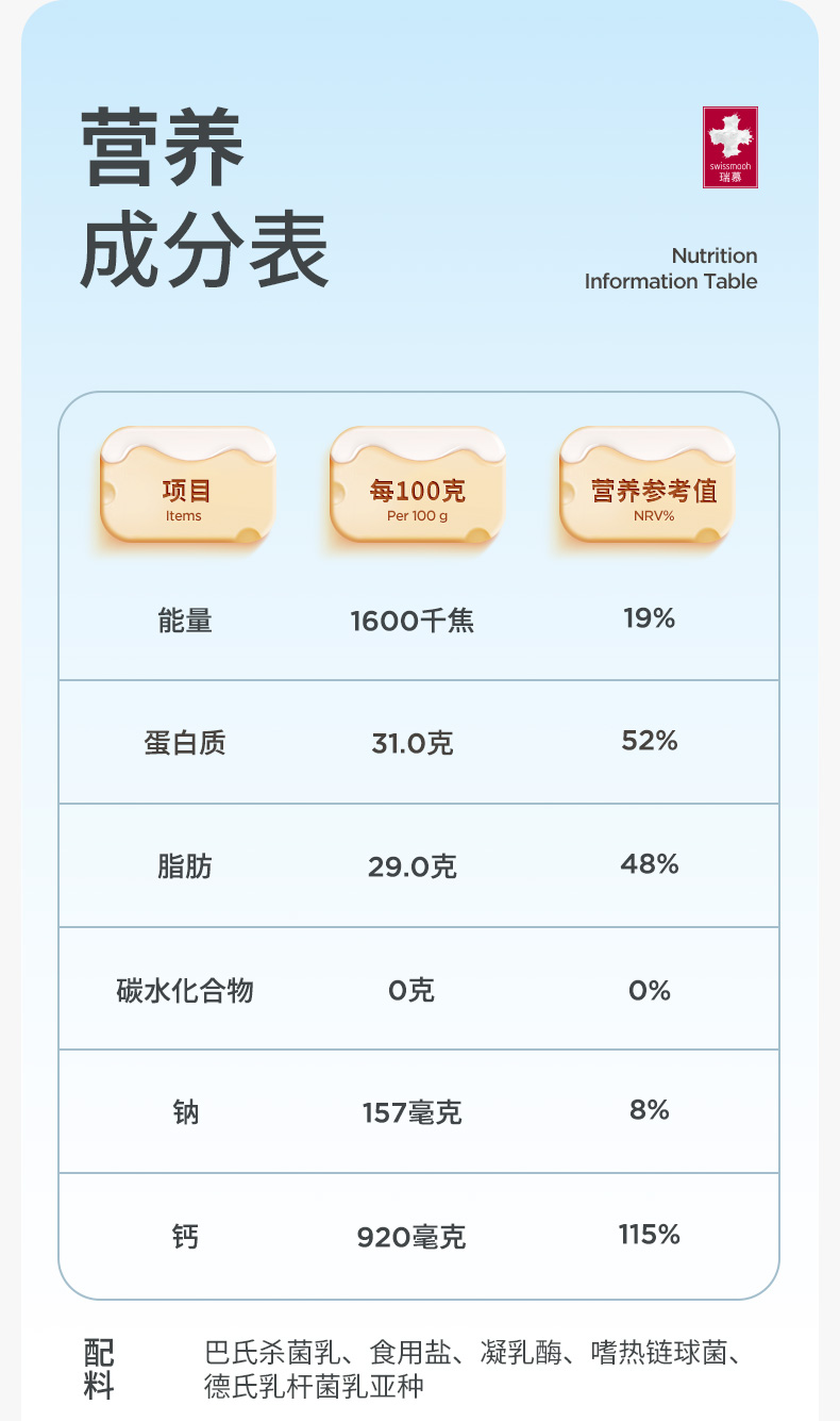 【高钙原制奶酪】瑞慕瑞士原装进口天然原制奶酪140g*2包\500g独立包装 优质蛋白