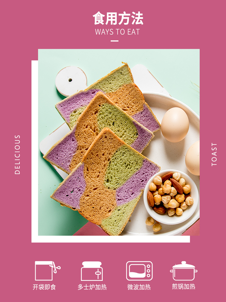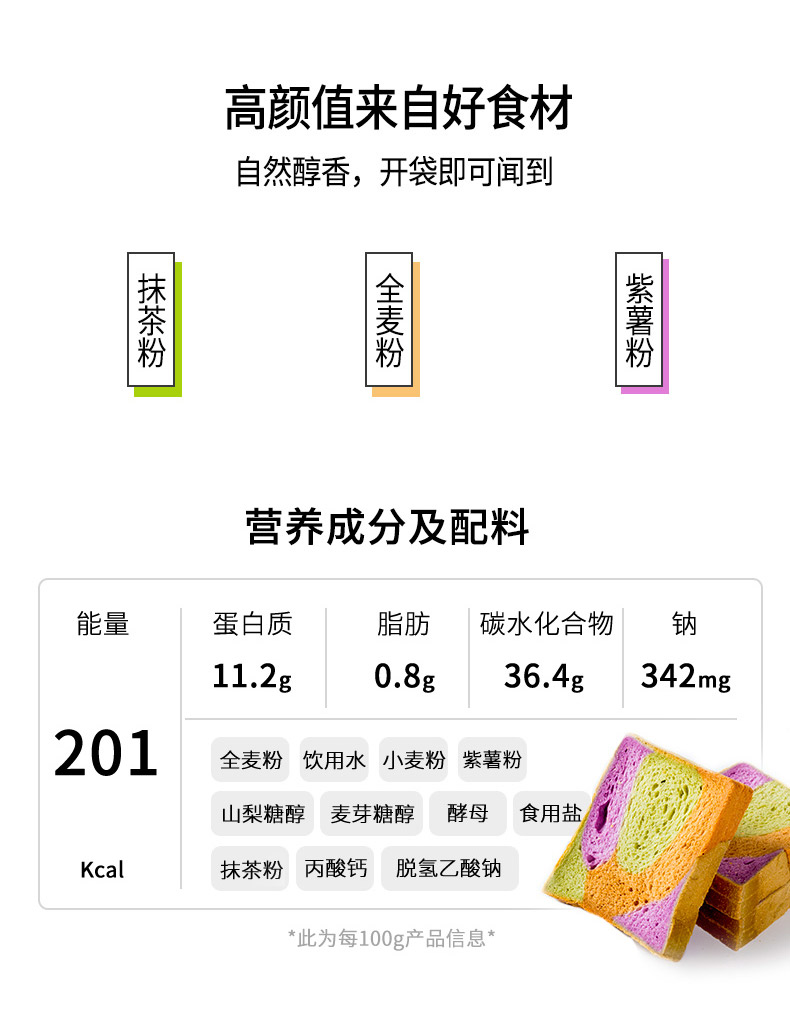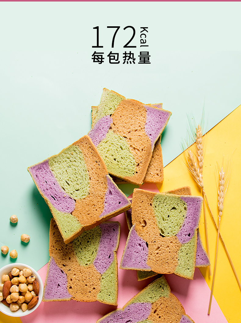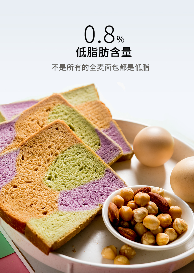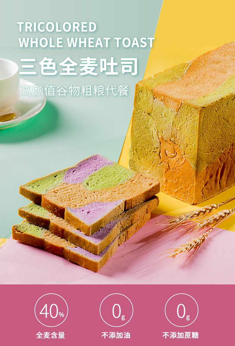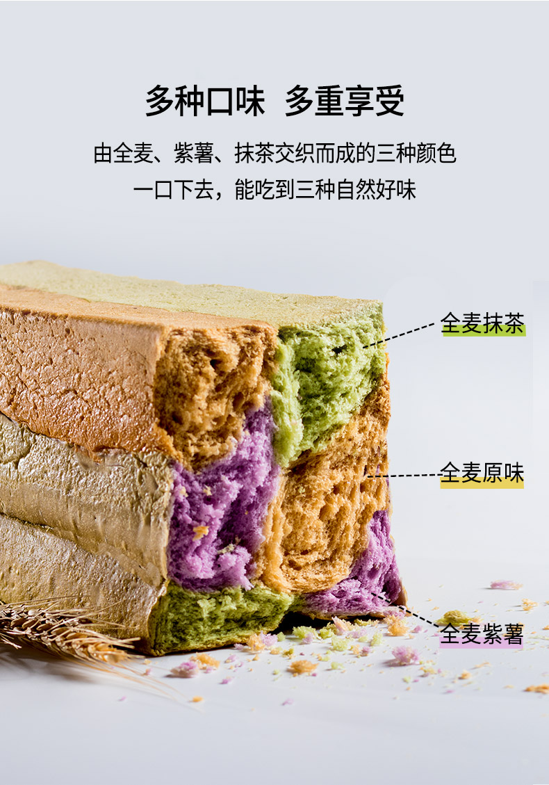 七年五季·50%全麦面包600g 彩虹三色全麦吐司600g/件