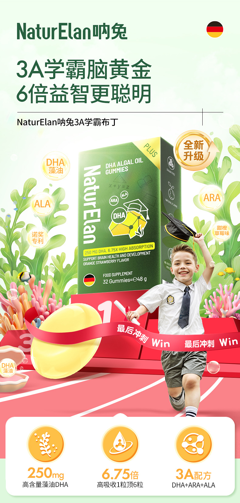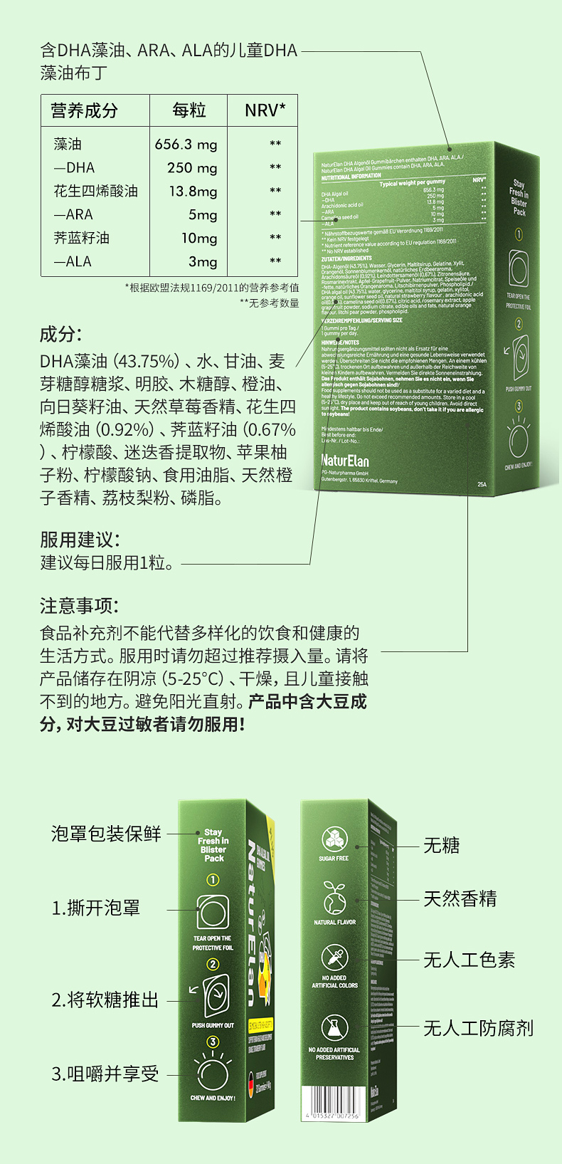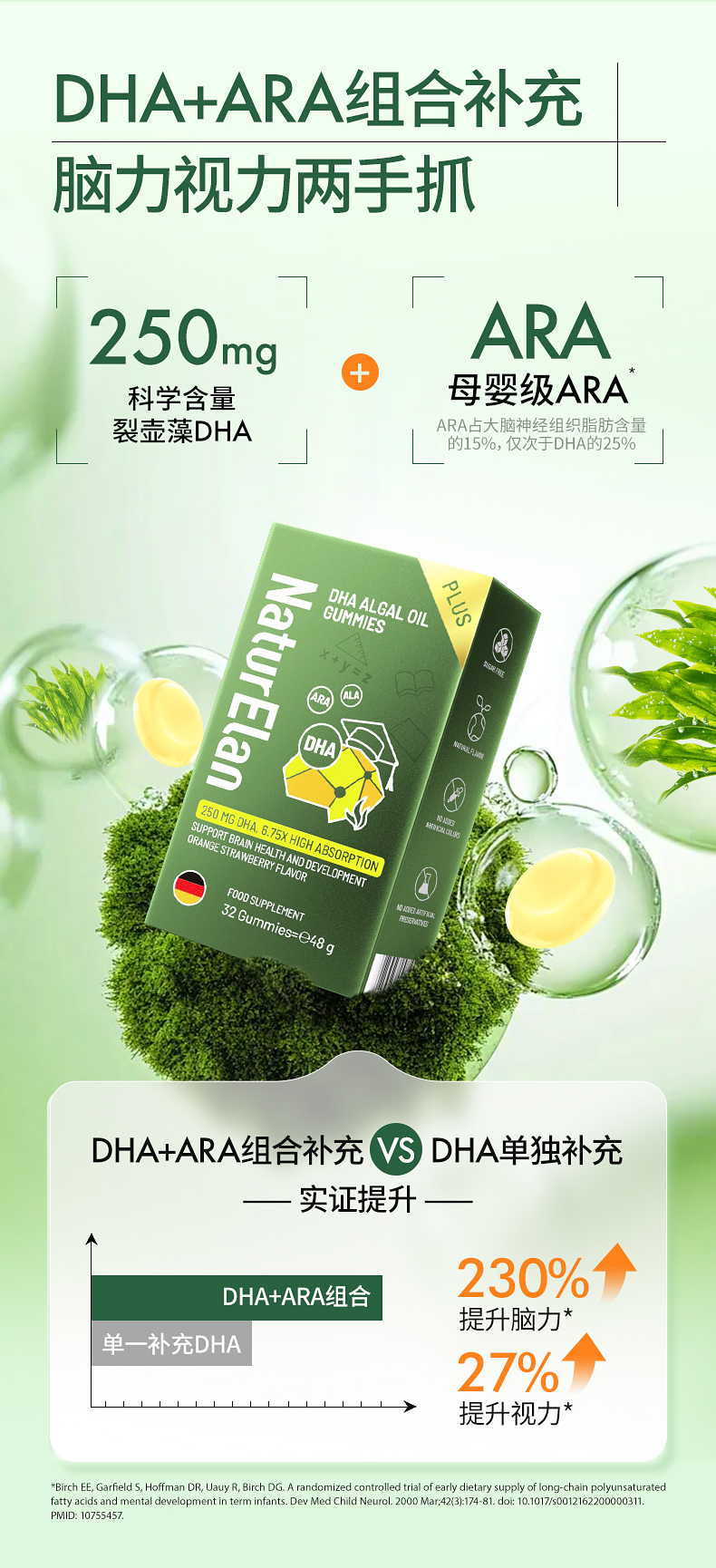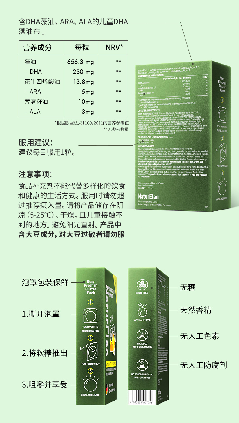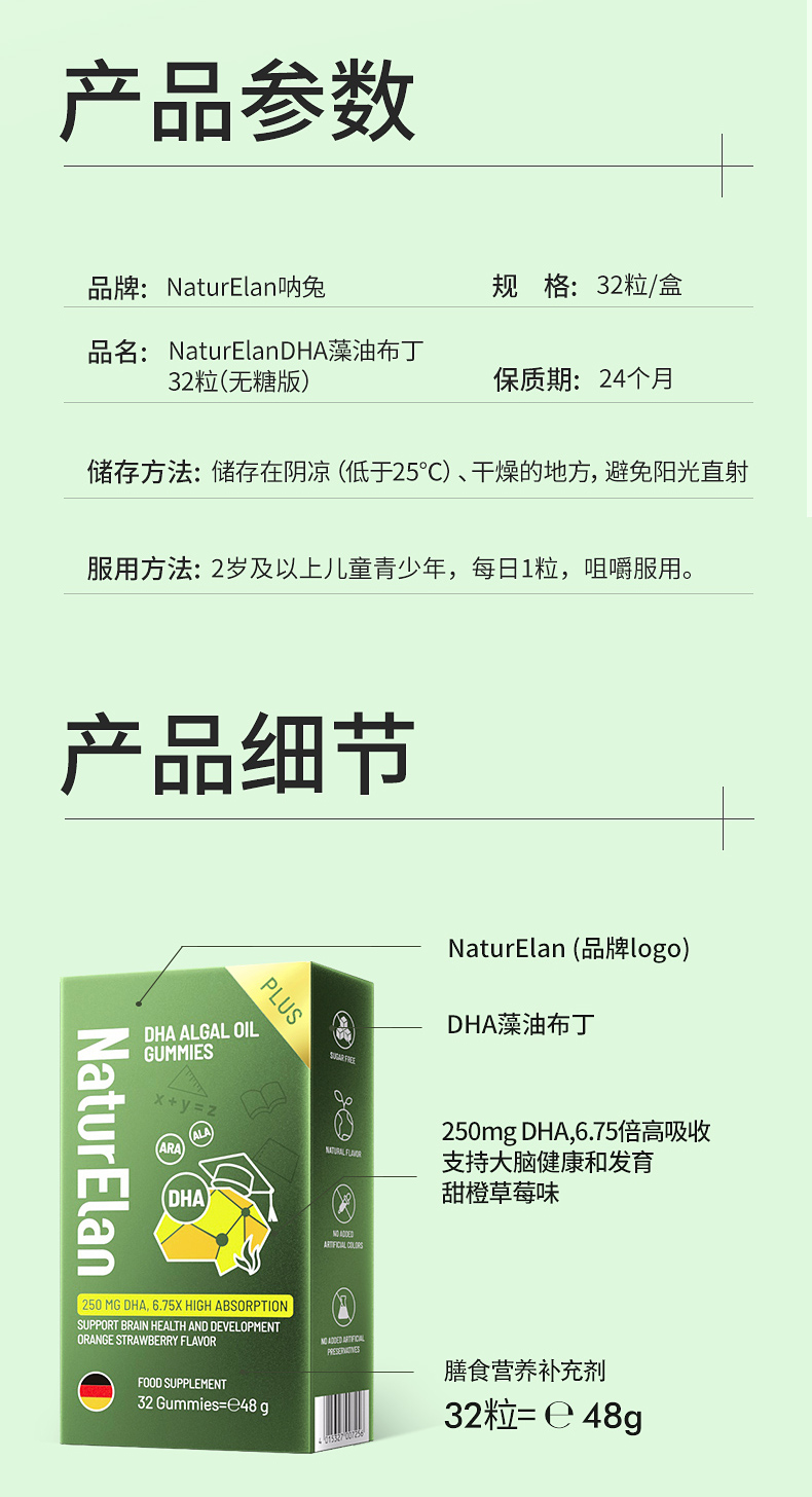 【活动】NaturElan呐兔DHA藻油布丁32粒 plus版(赠品叶黄素蒸汽眼罩)-nb
