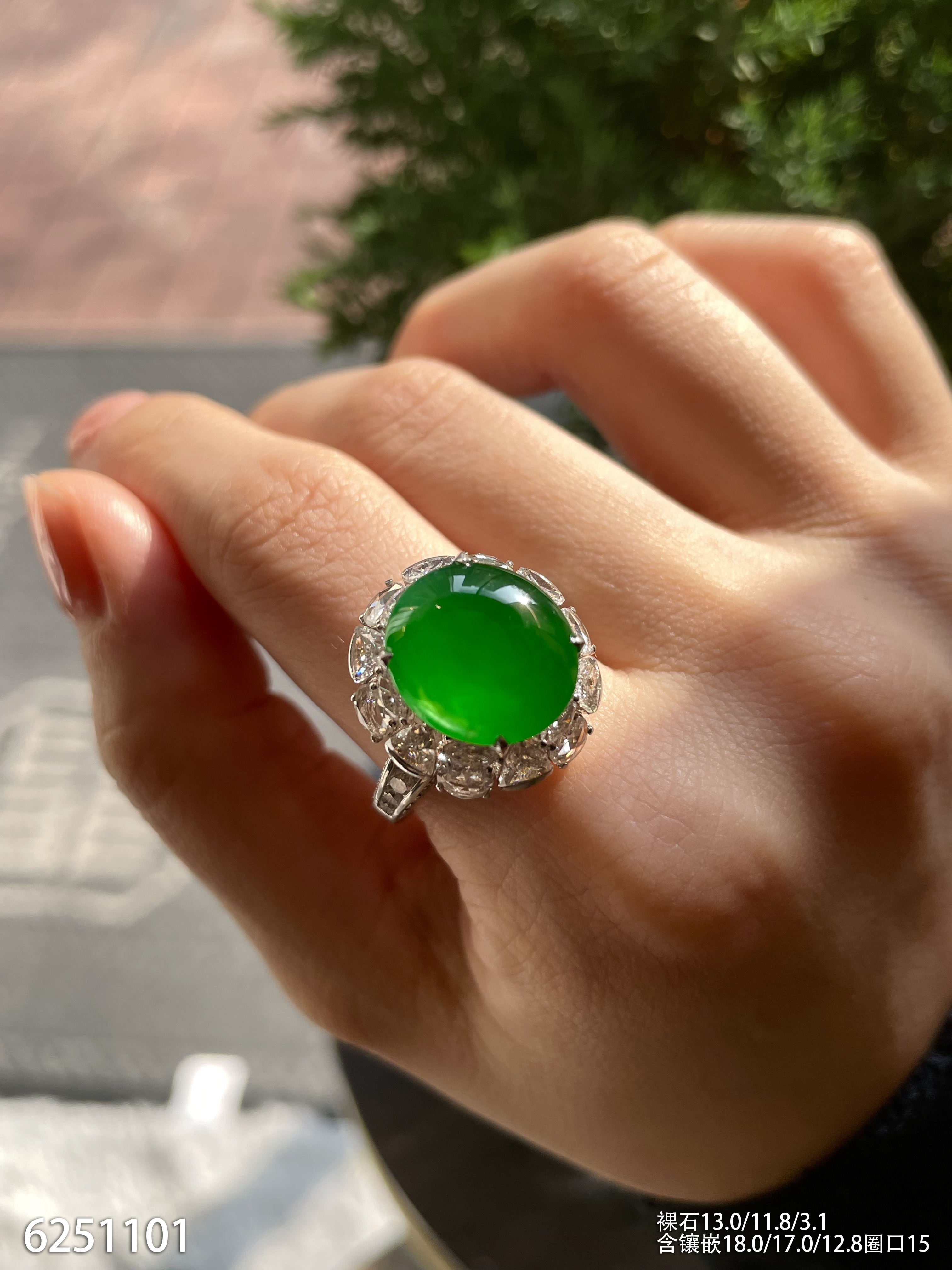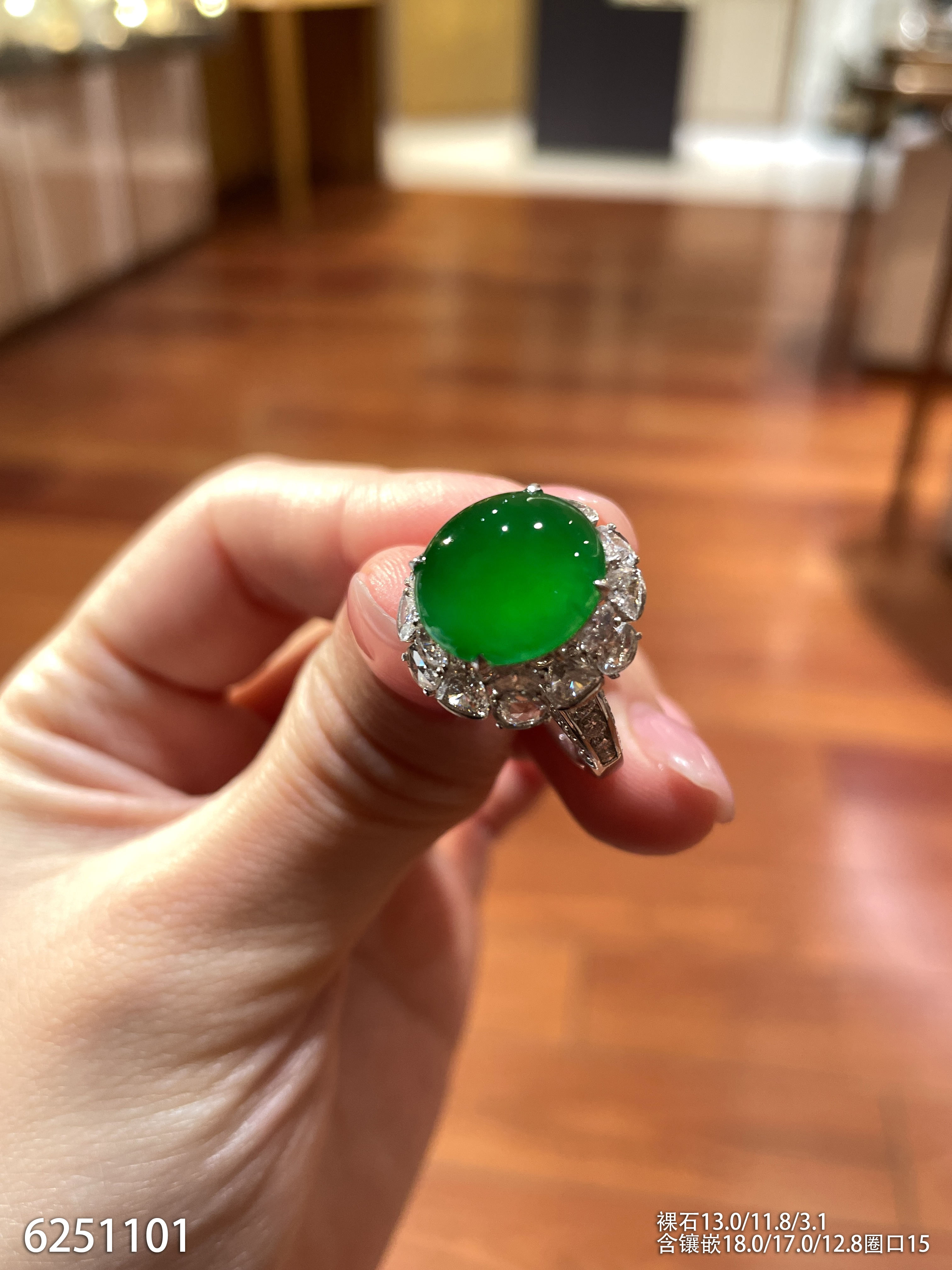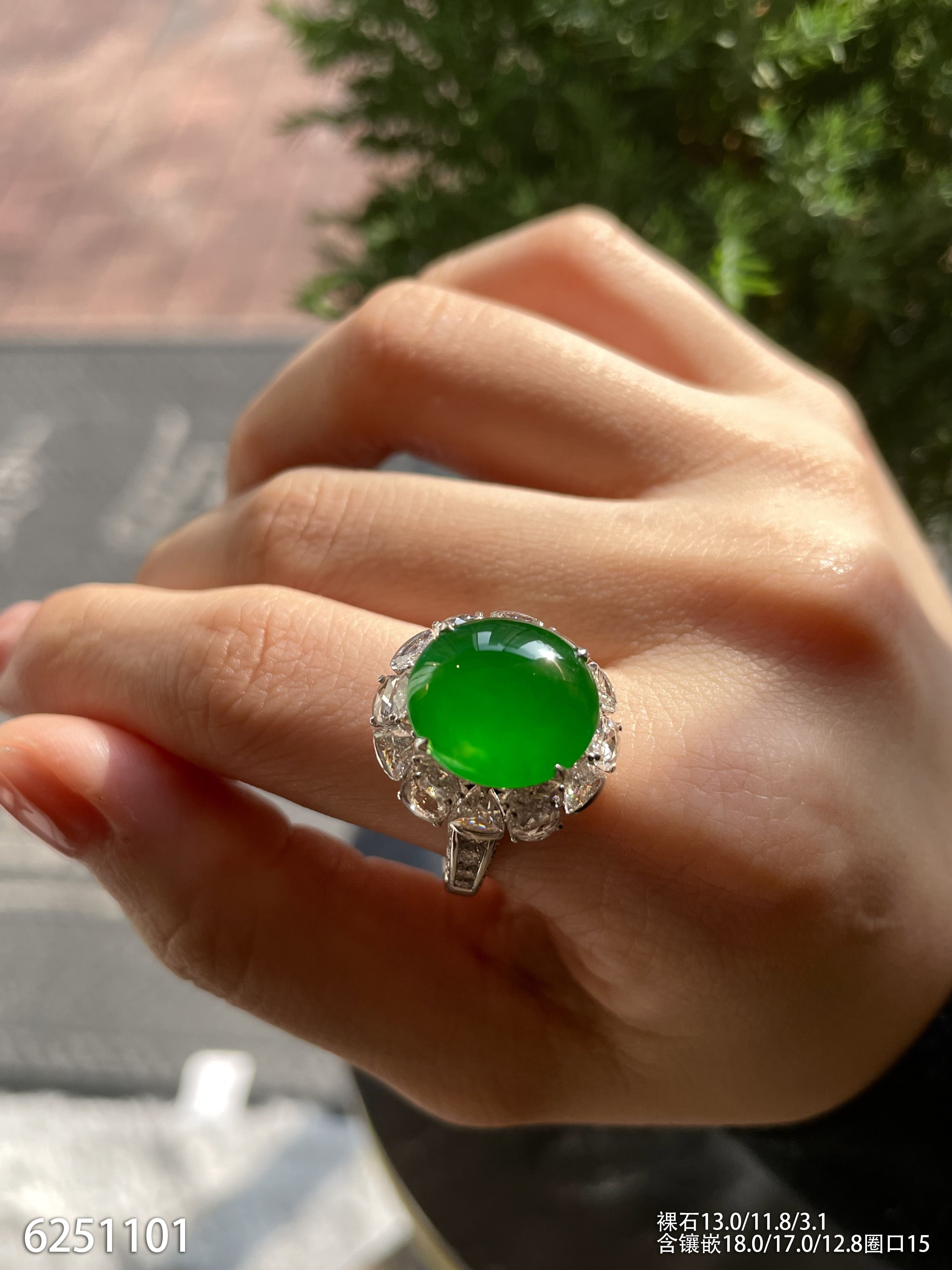 玻璃种艳绿蛋面戒指【6251101】具体价格微信咨询