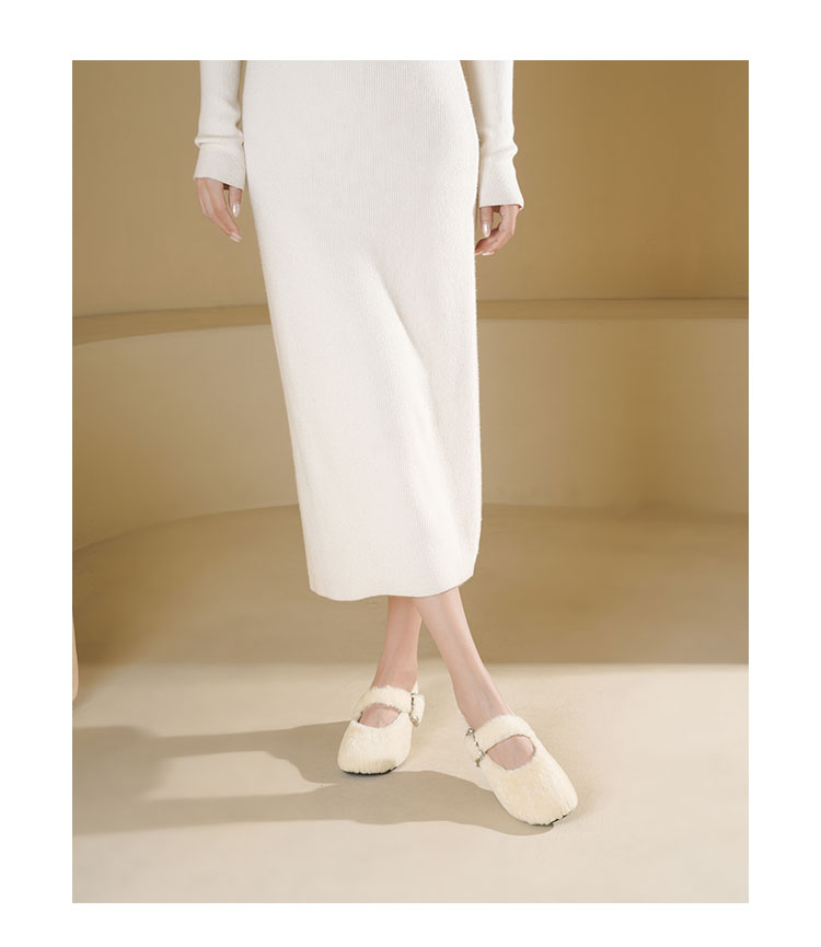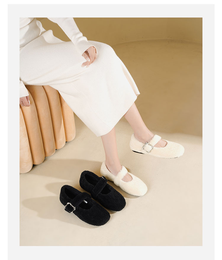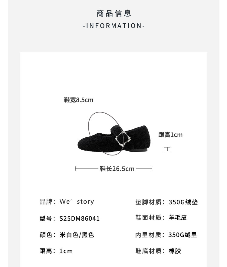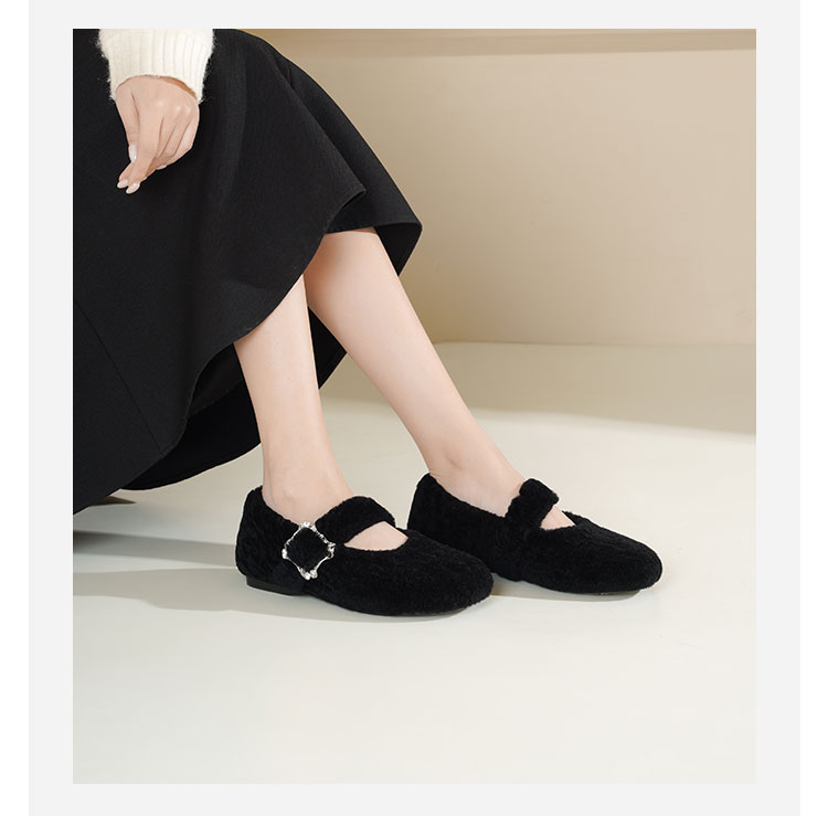 Westory2025年冬季羊毛玛丽珍圆头平底绒里舒适保暖单鞋S25DM86041