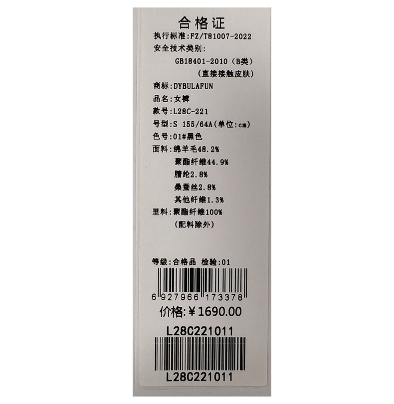 戴布拉芬长裤L28C221