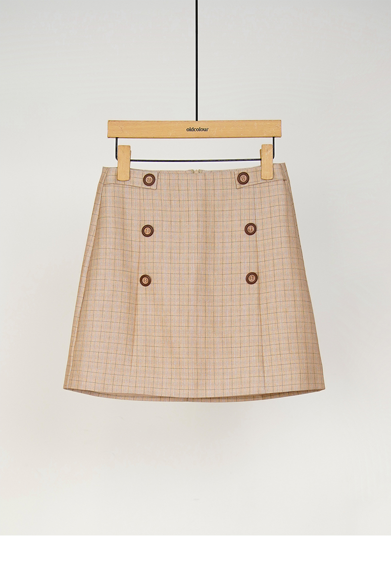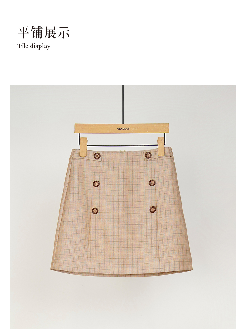 oldcolour春秋款半身裙高腰显瘦小个子减龄格子短裙女DM33061129