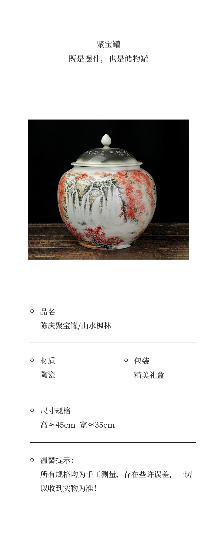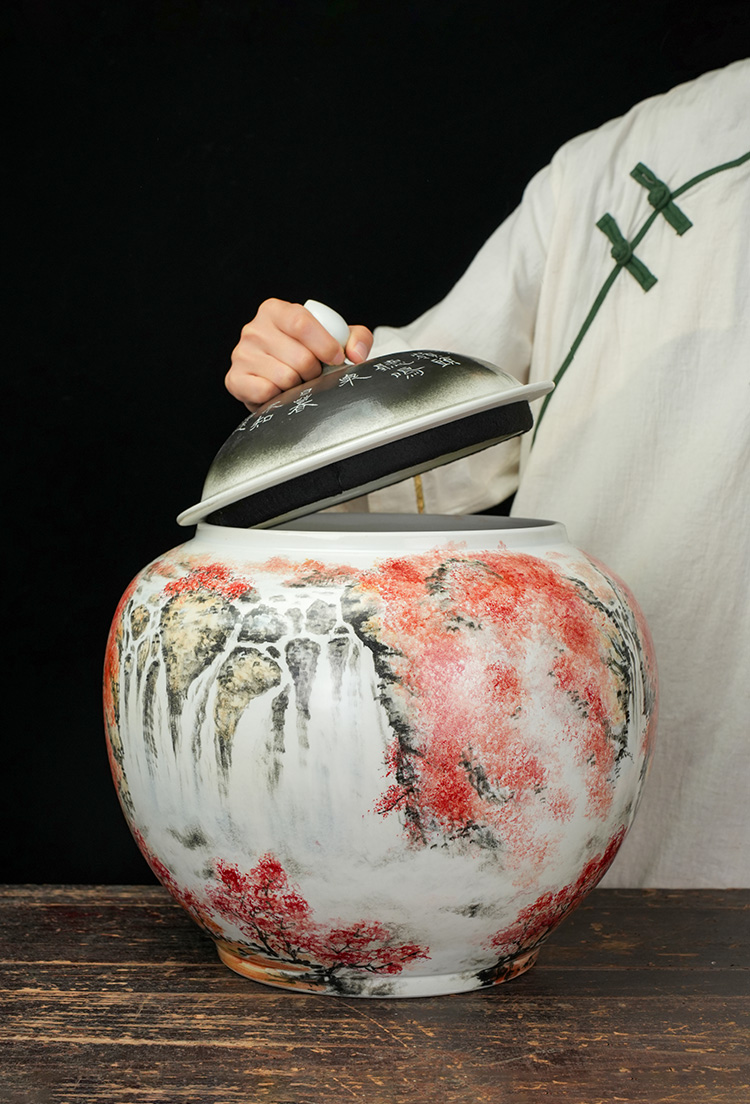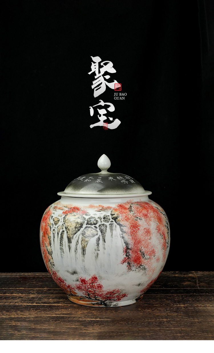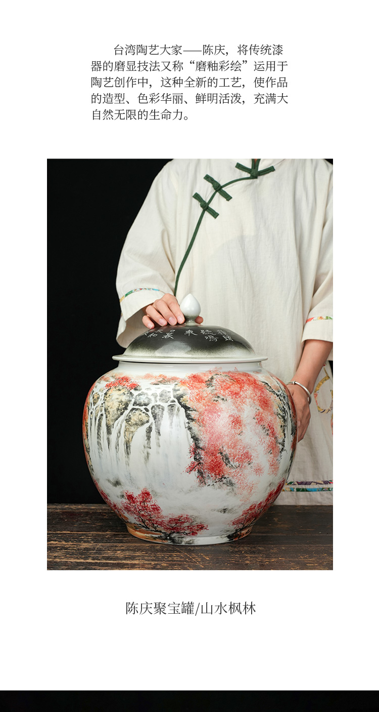 台湾陶艺大家 陈庆 聚宝罐 山水枫林招财罐大摆件家用办公室风水罐客厅店铺大容量储存罐