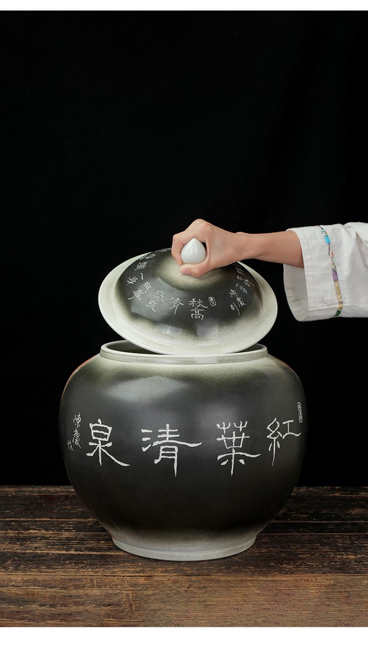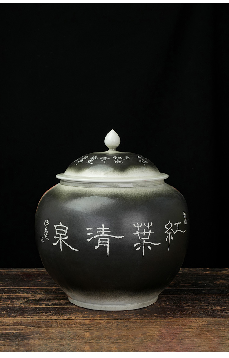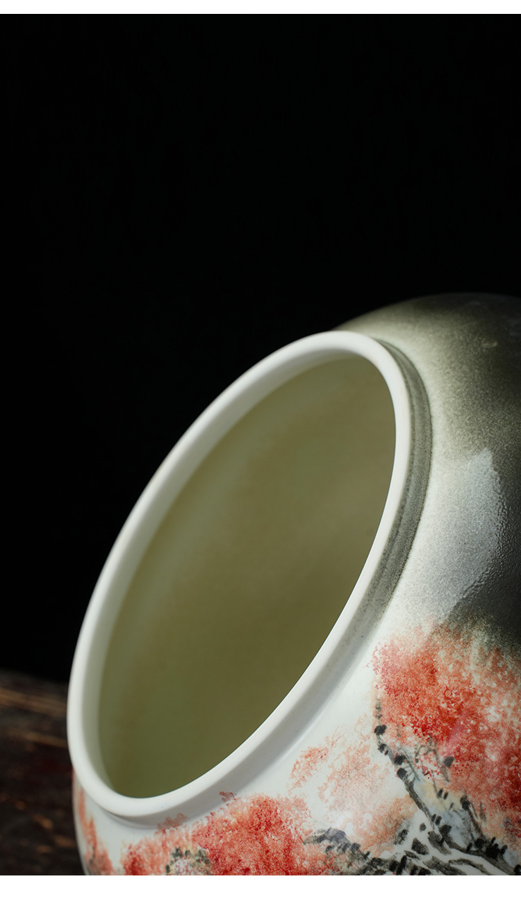台湾陶艺大家 陈庆 聚宝罐 山水枫林招财罐大摆件家用办公室风水罐客厅店铺大容量储存罐