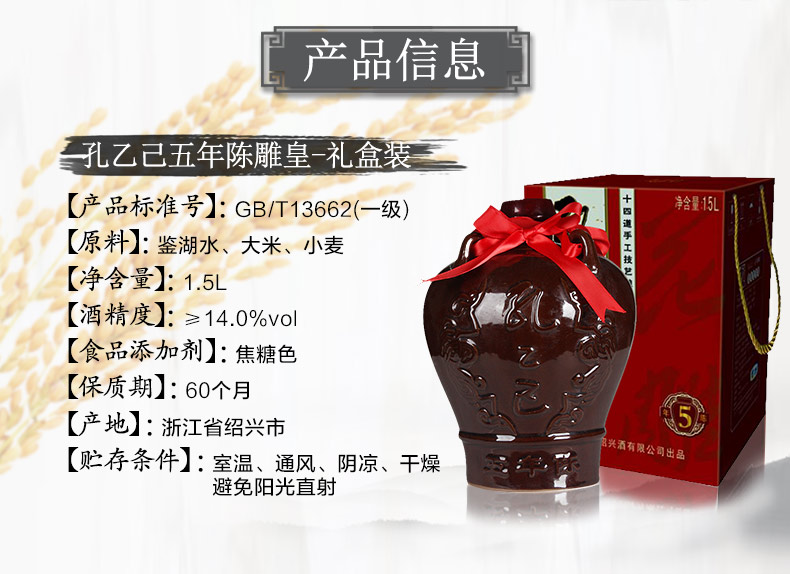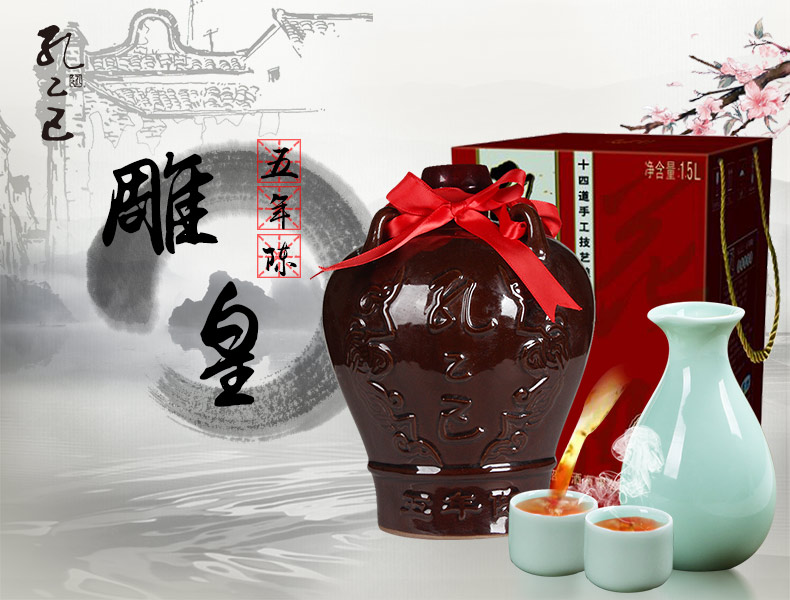 孔乙己(盒装)雕皇五年传统型半干黄酒14度1.5L